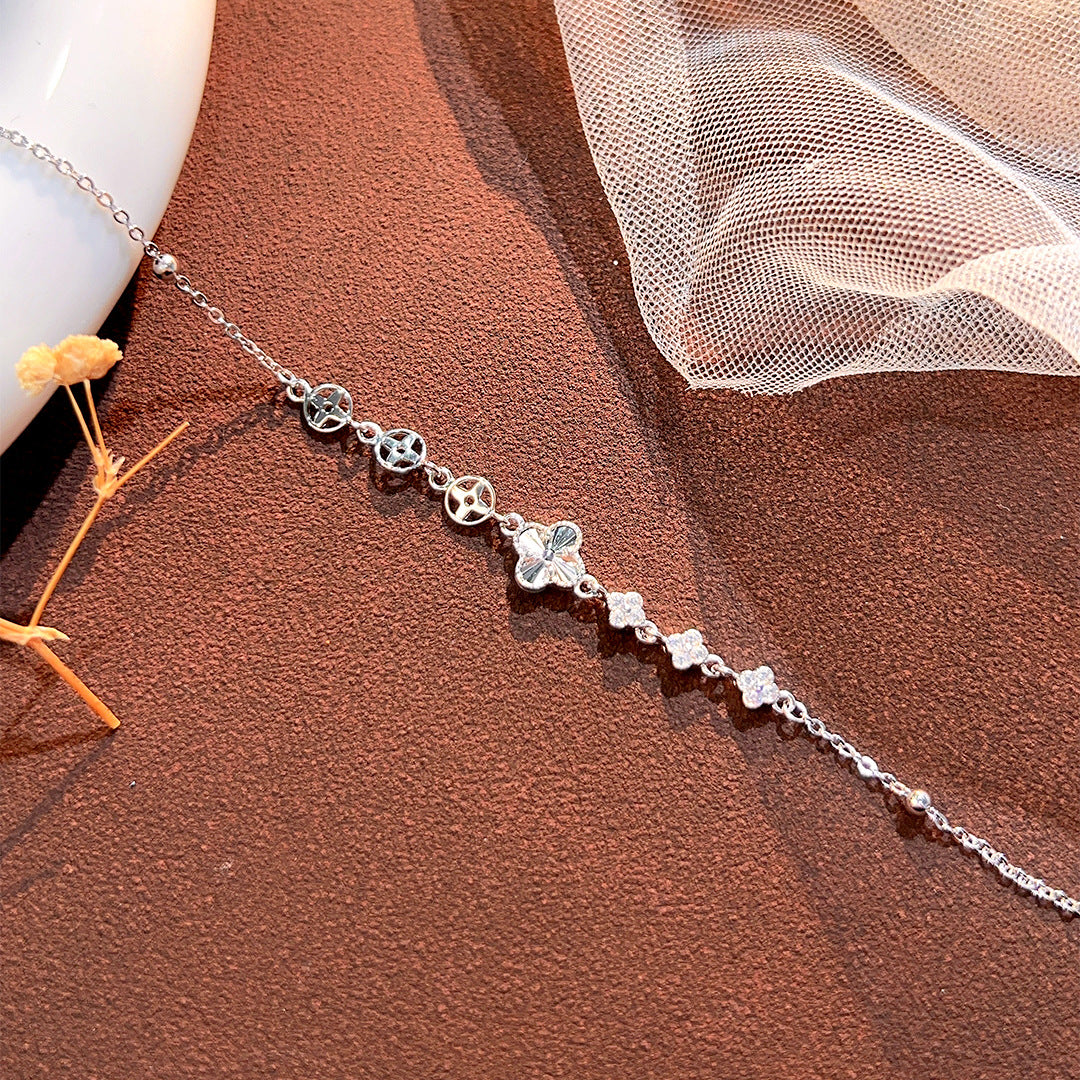 Planderful Everyday Genie S925 Sterling Silver Lucky Flower Four-Leaf Clover Bracelet Women's Double-Sided Car Flower Fashion Versatile Jewelry