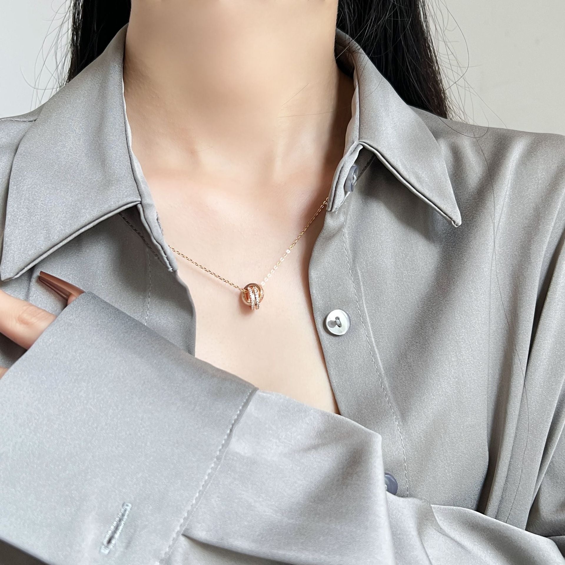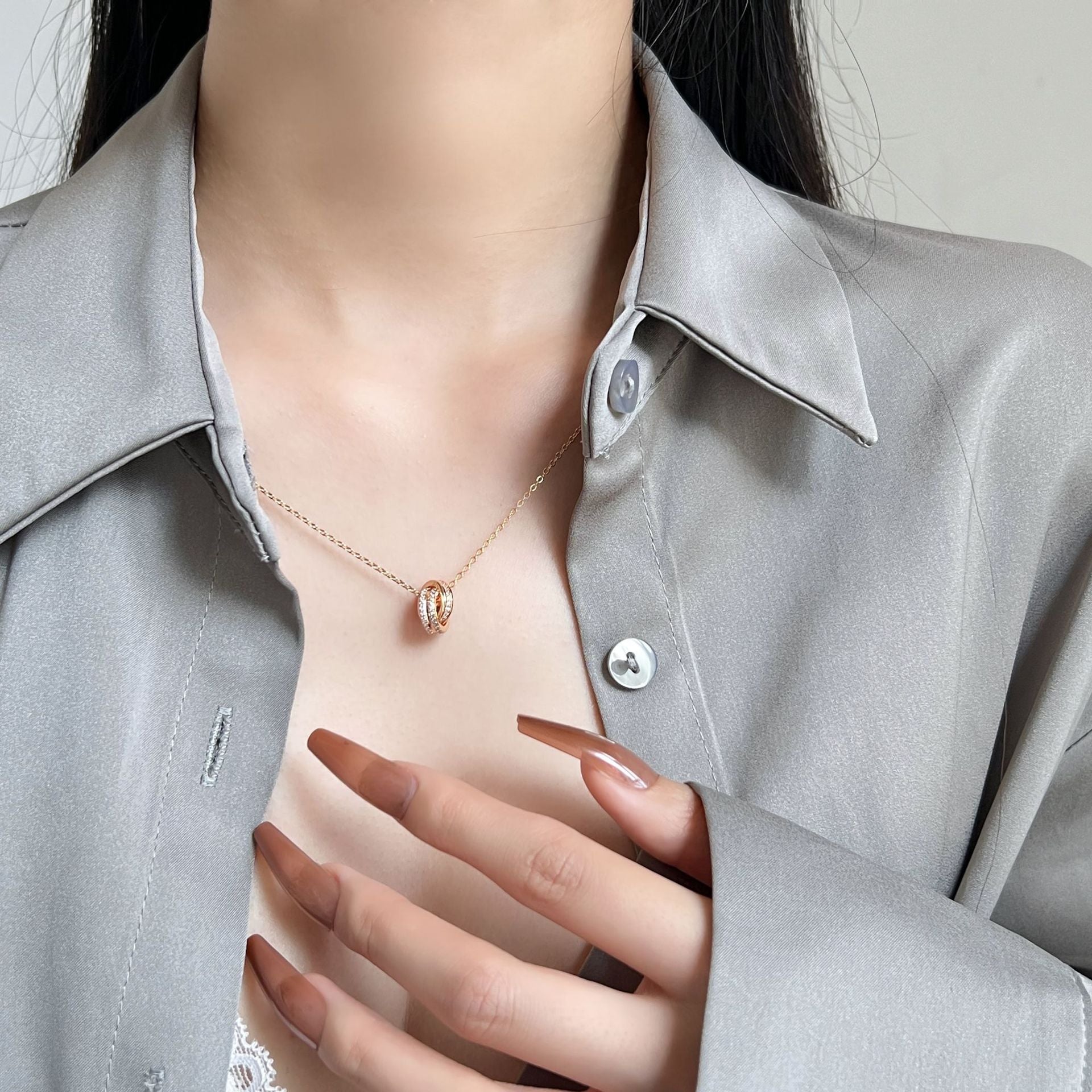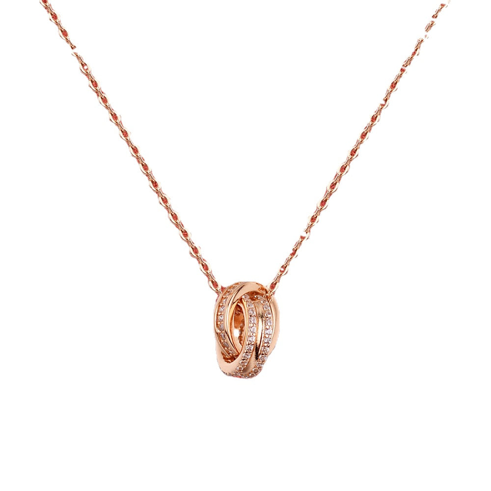 Zircon Double Ring Buckle Silver Necklace for Women