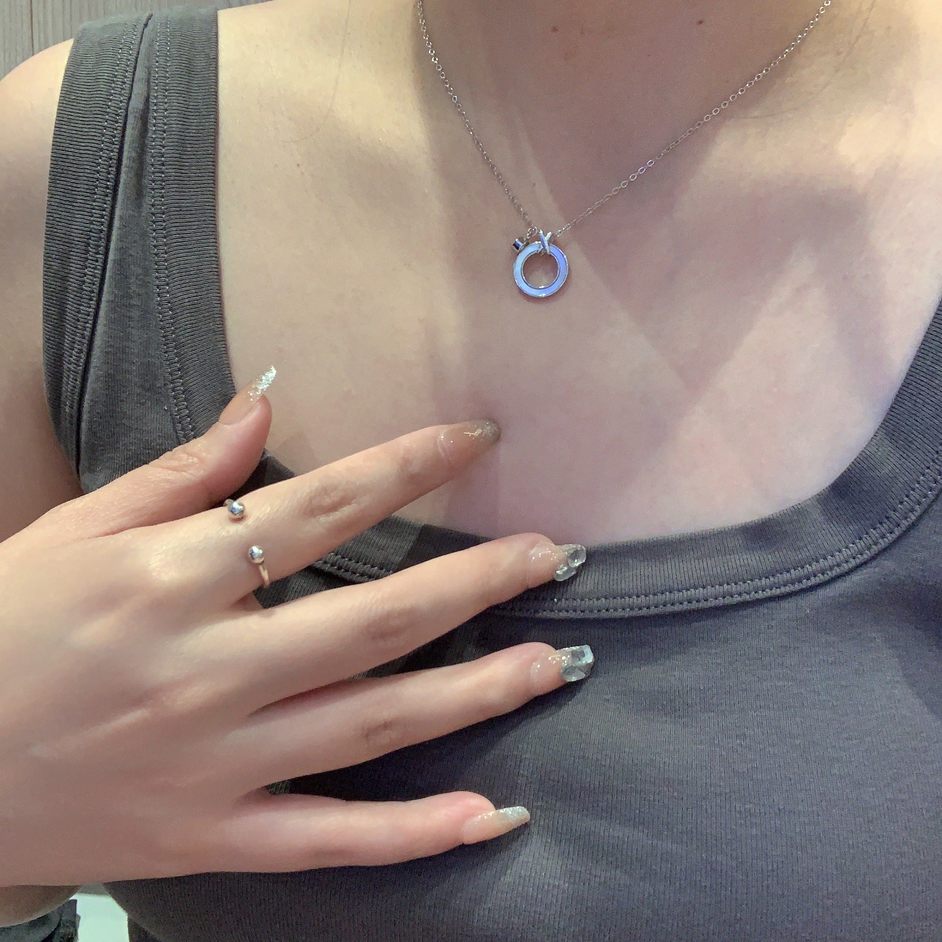 Mother of Pearl Circle Pendant with Zircon Silver Necklace for Women