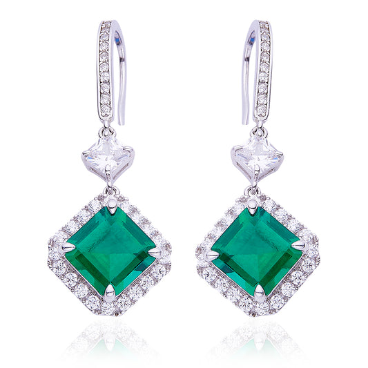 Lab Created Emerald 6*8mm - Platinum Plated - Drop Silver Earring for Women