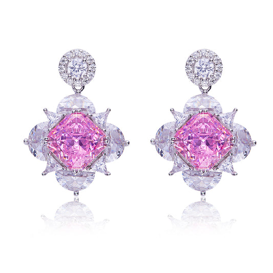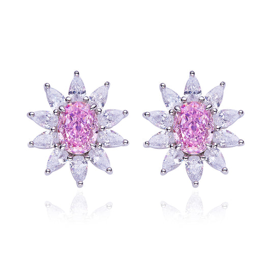 Barbie Pink Zircon Ice Cut Silver Studs Earrings for Women