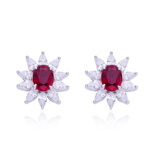 Lab Created Blood Ruby 6*8mm - Platinum Plated - Drop Silver Earring for Women