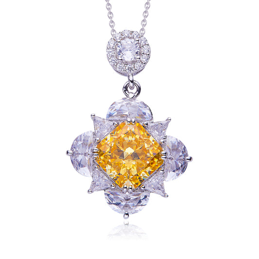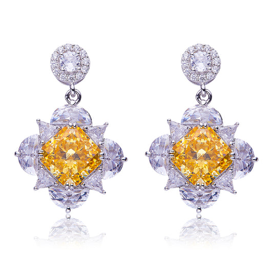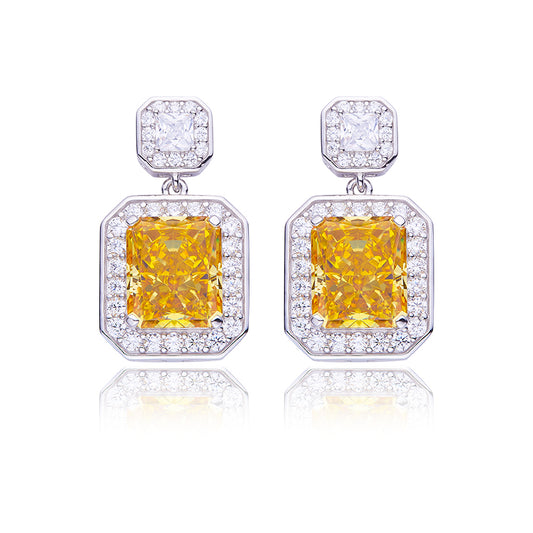 Yellow Zircon 9*11mm Rectangle Ice Cut Half Annular Petals Silver Studs Earrings for Women
