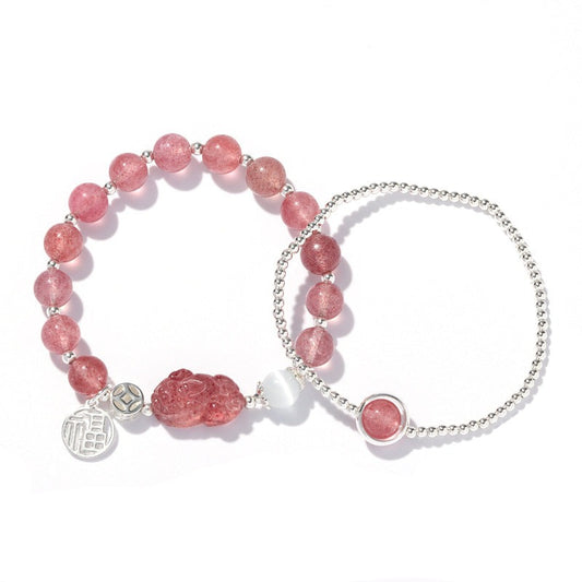 Natural Strawberry Crystal and Agate Bracelet with Sterling Silver Safety Buckle