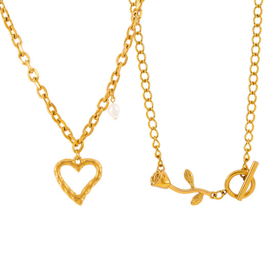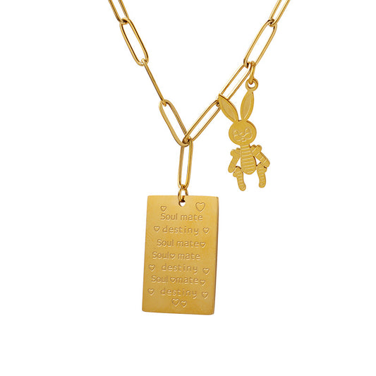 Cold Wind Love Pendant Clavicle Necklace - Women's Titanium Steel Plated 18k Gold Jewelry