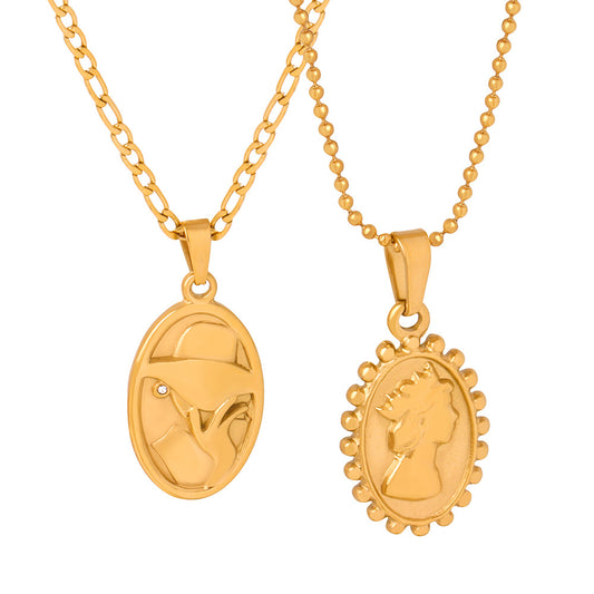 Korean Instagram Chic Round Necklaces with Layered Design, Women's 18K Gold-Plated Titanium Steel