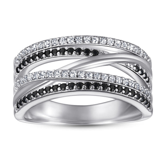 Luxurious Double-Layer Sterling Silver Zircon Ring