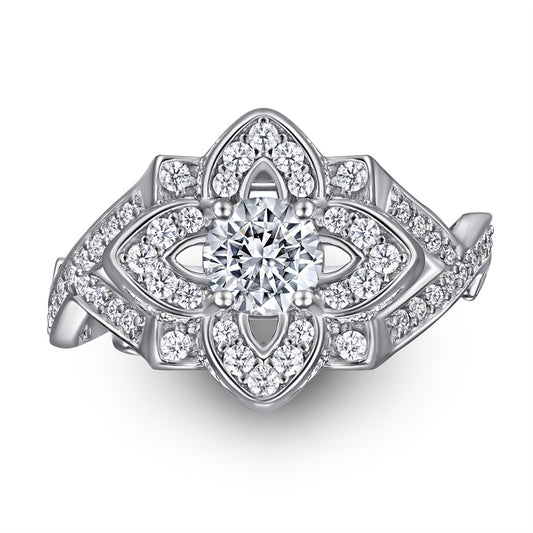 Exquisite S925 Sterling Silver Zircon-Encrusted Flower Ring - Size 5-10
