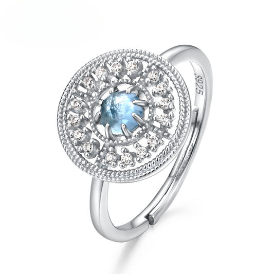 Zircon Disc Round Natural Blue Topaz Opening Sterling Silver Ring