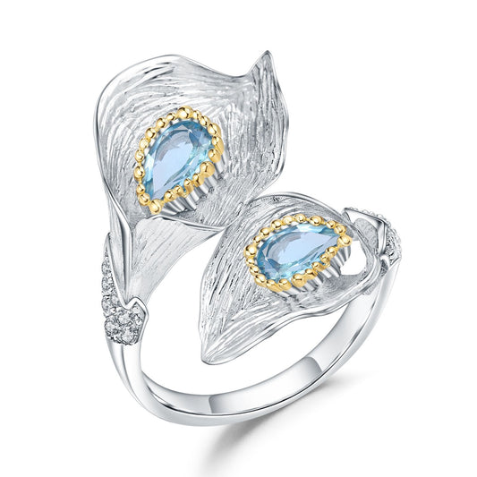 Lily Flower Natural Blue Topaz Opening Silver Ring