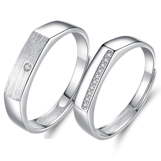 Hollow T-letter with Zircon Silver Ring for Women