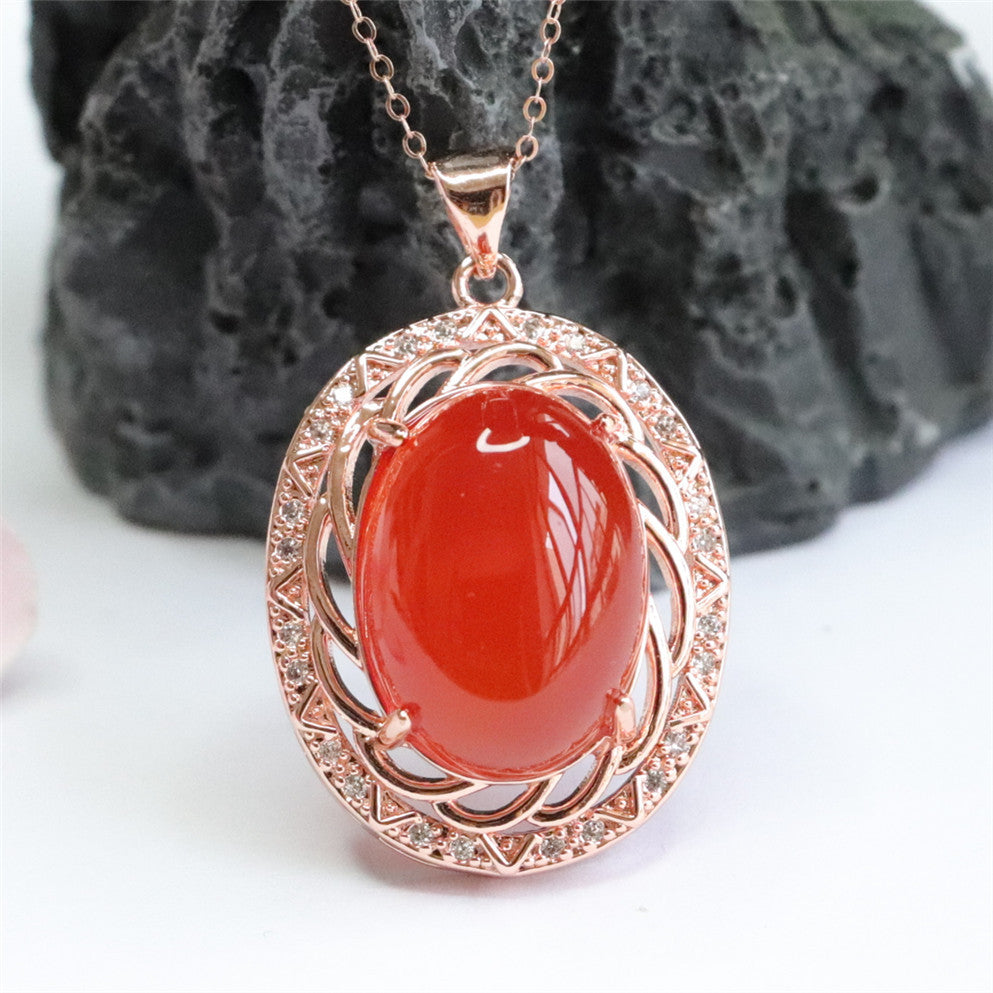 Pigeon Egg Natural Red Agate Pendant Zircon Rose Gold Clavicle Necklace Jewelry