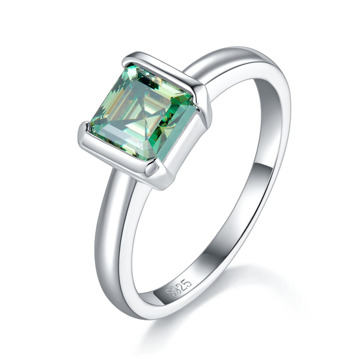 1.0 Carat Green Moissanite Asscher Cut Ring in S925 Silver with Platinum Plating