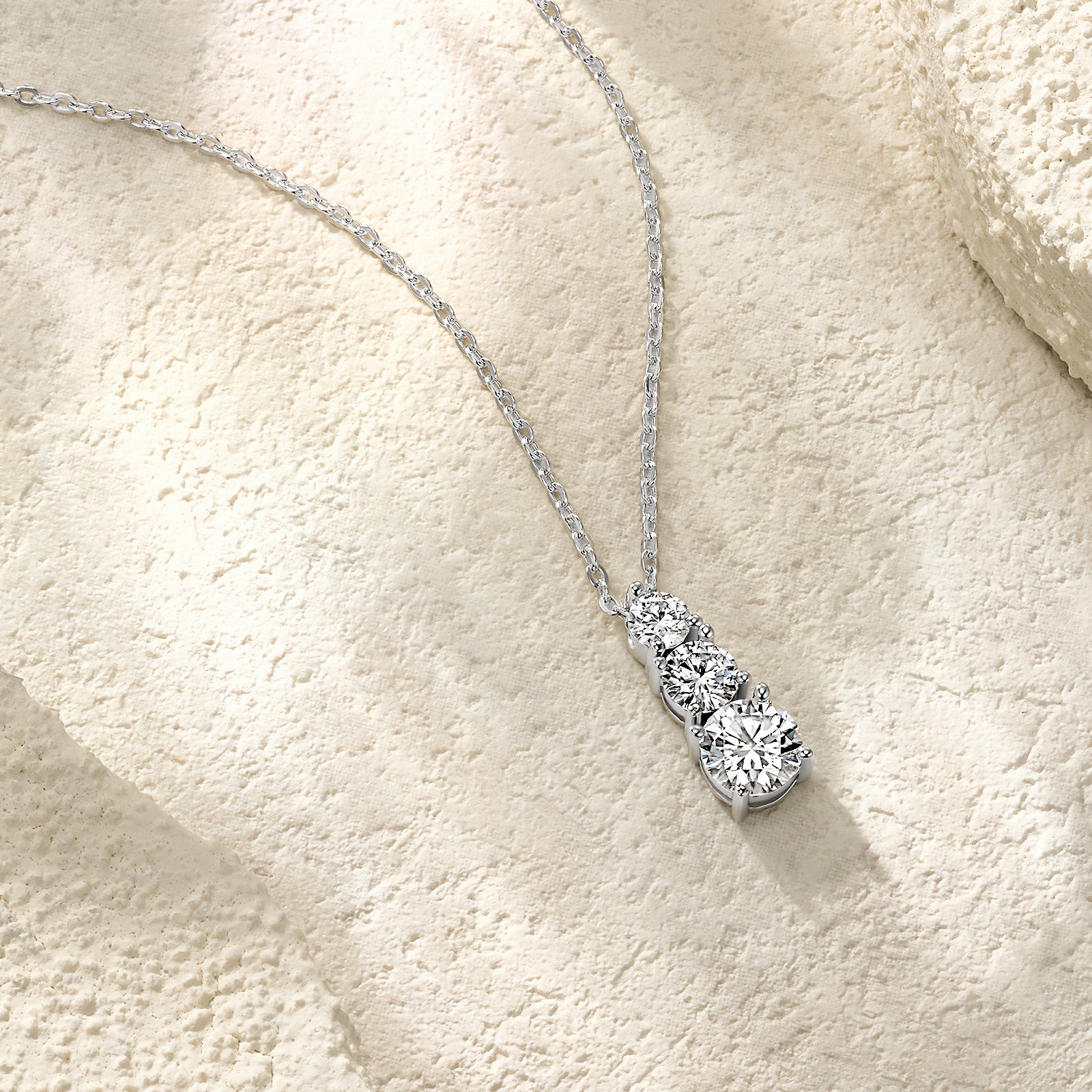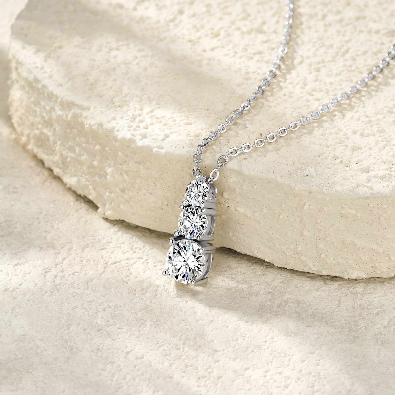 • Pendant & Design: Minimalist three-round moissanite pendant