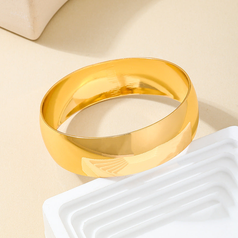Fashionable European and American Simple and Versatile Minimalist Metal Gold Smooth Plain Ring Women's Bracelet by Planderful delivers elegance and simplicity for your daily fashion needs. This exquisite bracelet from the Vienna Verve collection is the perfect accessory to enhance any outfit, making it a must-have in your jewelry box.