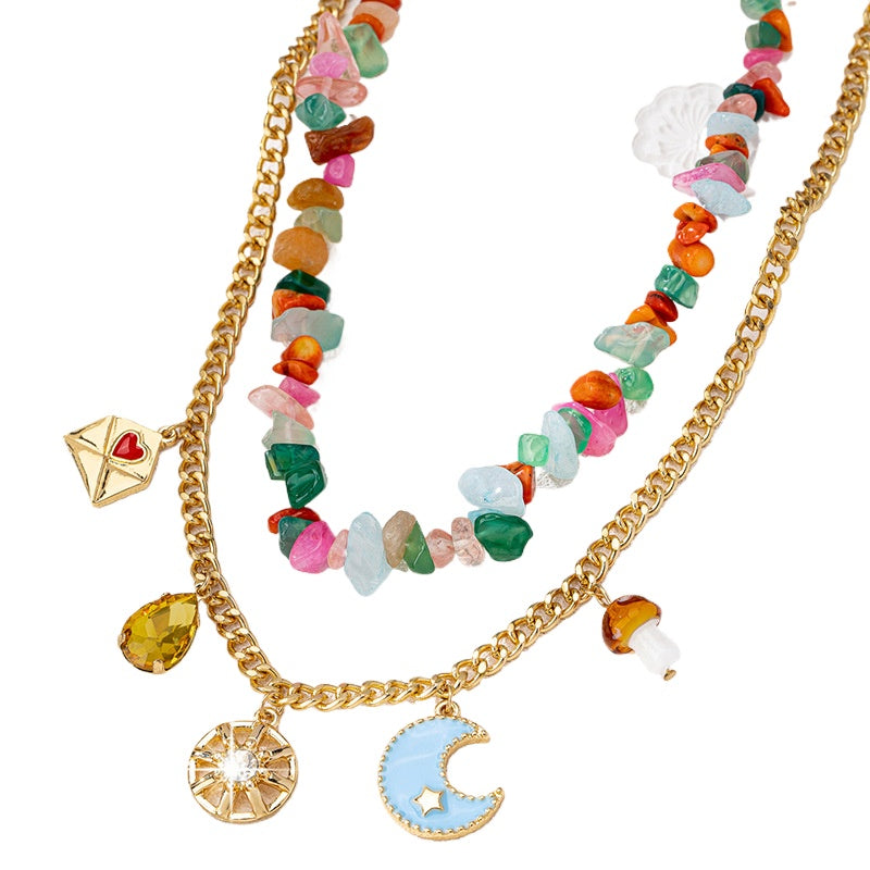 Elevate your style with the stunning 1 set of European and American fashion high-end colored natural stone metal chain star moon multi-element necklace set. This exquisite piece from the Planderful collection, known as Vienna Verve, is designed for the fashion-forward individual who appreciates unique accessories.