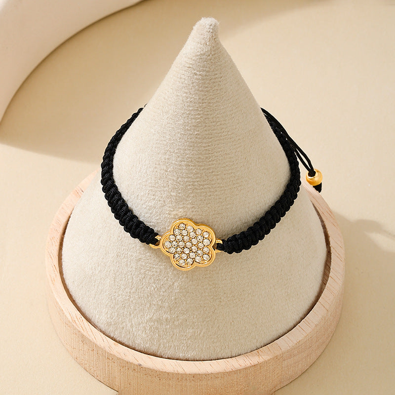 Crafted with meticulous attention to detail, this bracelet combines simplicity with sophistication. Its unique five-leaf clover design is embellished with shimmering zircon stones that catch the light beautifully, ensuring you stand out wherever you go.