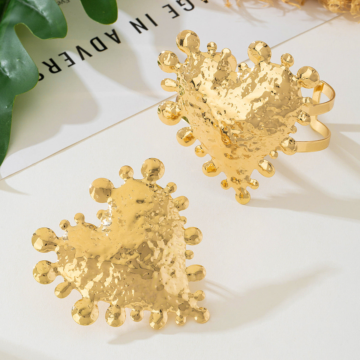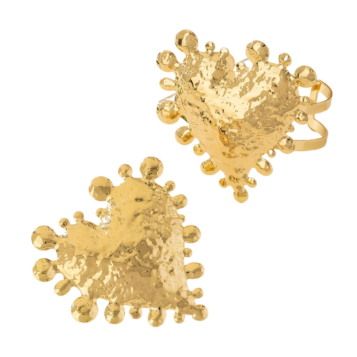 Elevate your accessory game with our 2-piece fashionable exaggerated metal love opening women's ring bracelet set. Designed for the modern woman who embraces creativity and bold statements, this exquisite jewelry set is not just an accessory; it’s a reflection of your unique style.