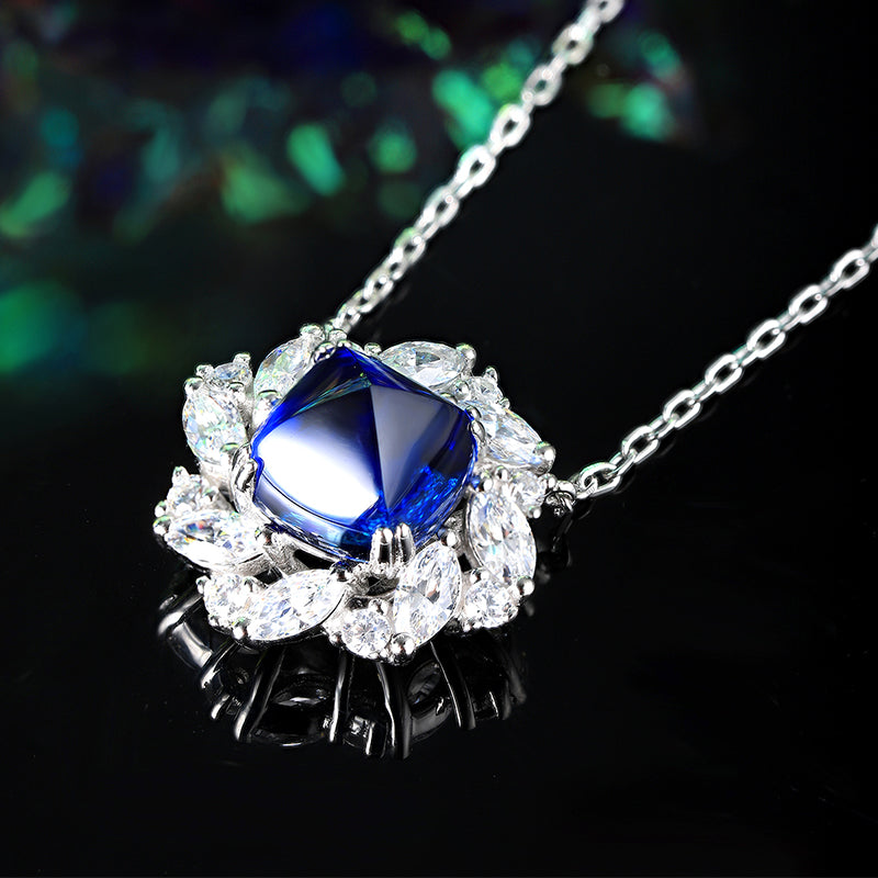 Elevate your jewelry collection with the stunning 3.3 carat square Lab Created colored gemstone necklace, beautifully adorned with a petal halo design. This exquisite piece is crafted with meticulous attention to detail, ensuring you shine on any occasion.