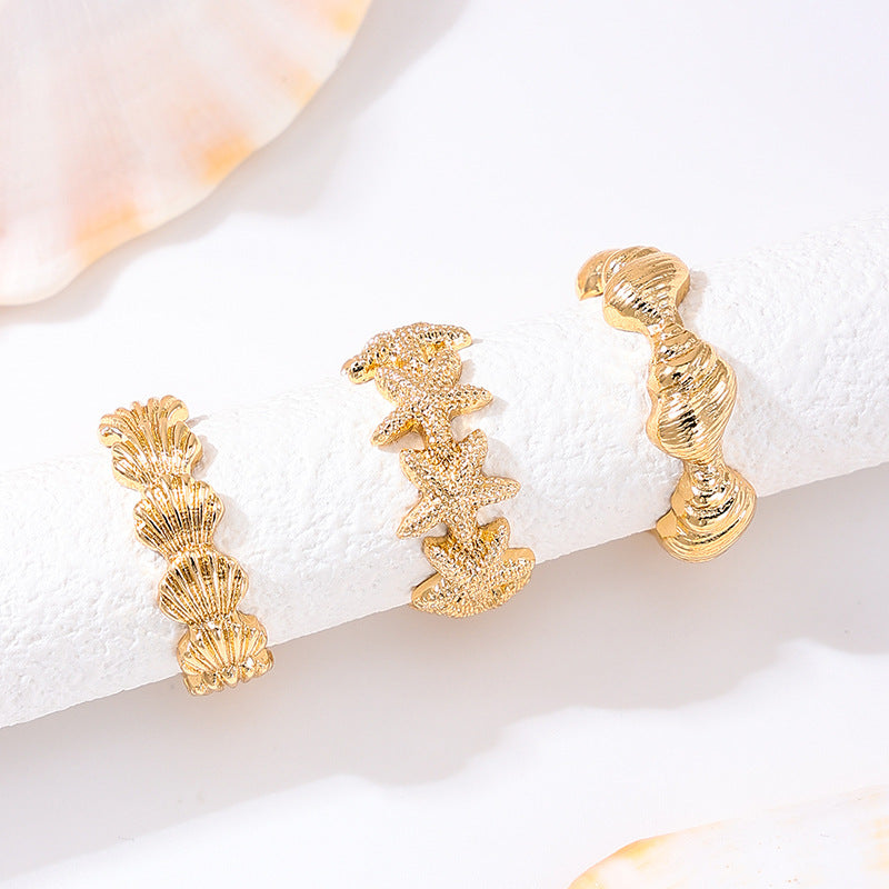 Elevate your beach vacation look with our 3 Stylish Beach Vacation Wind Metal Ocean Element Shell Starfish Conch Ladies Open Ring. Crafted with elegance and inspired by the serene beauty of the ocean, this ring is the perfect accessory to complement your summer wardrobe.