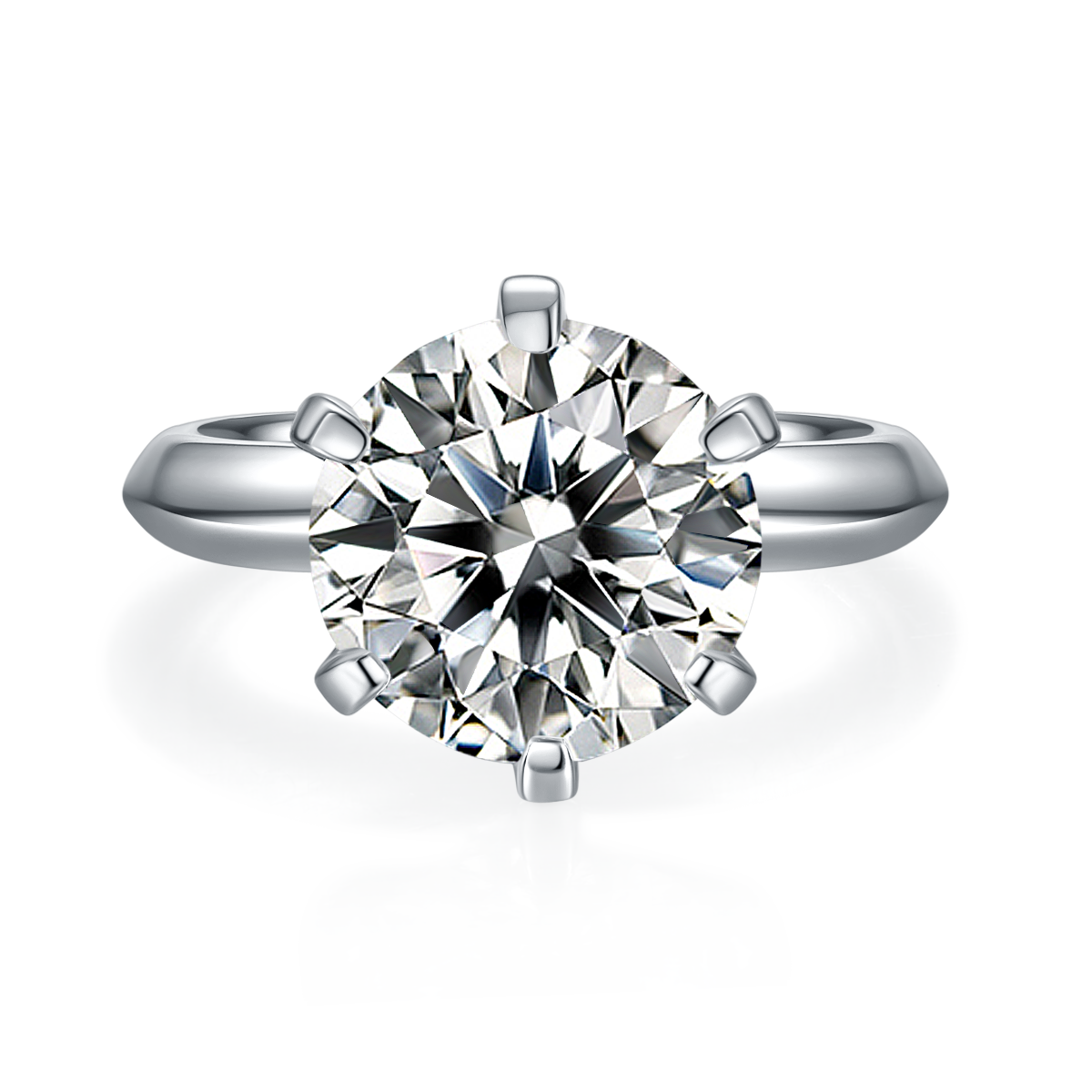 Six Prongs 5.0 Carat Round Moissanite Engagement Ring
