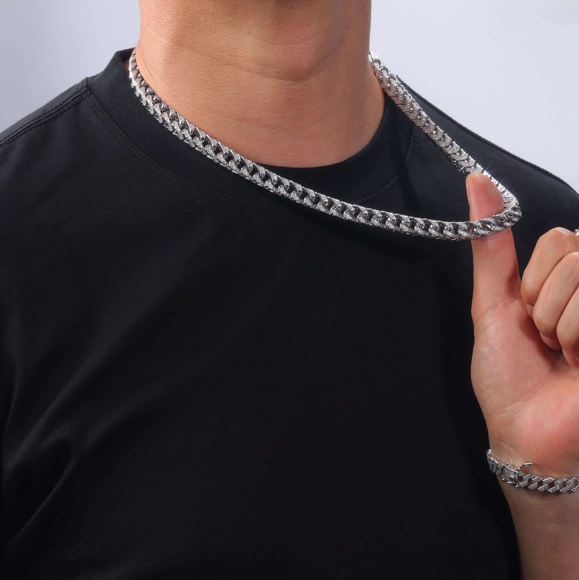 Meet the Planderful Moissanite Sparkling Cuban necklace—a bold, hip-hop inspired men's necklace crafted in sterling silver with platinum plating and a luxurious Moissanite sparkle. Designed for men who value presence and craftsmanship, it offers a contemporary edge with timeless shine. Available in lengths of 41 cm, 46 cm, or 56 cm to suit different styles.