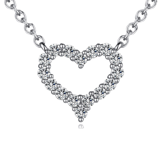 Valentine's Day Gift Zircon Hollow Heart Pendant Silver Necklace for Women