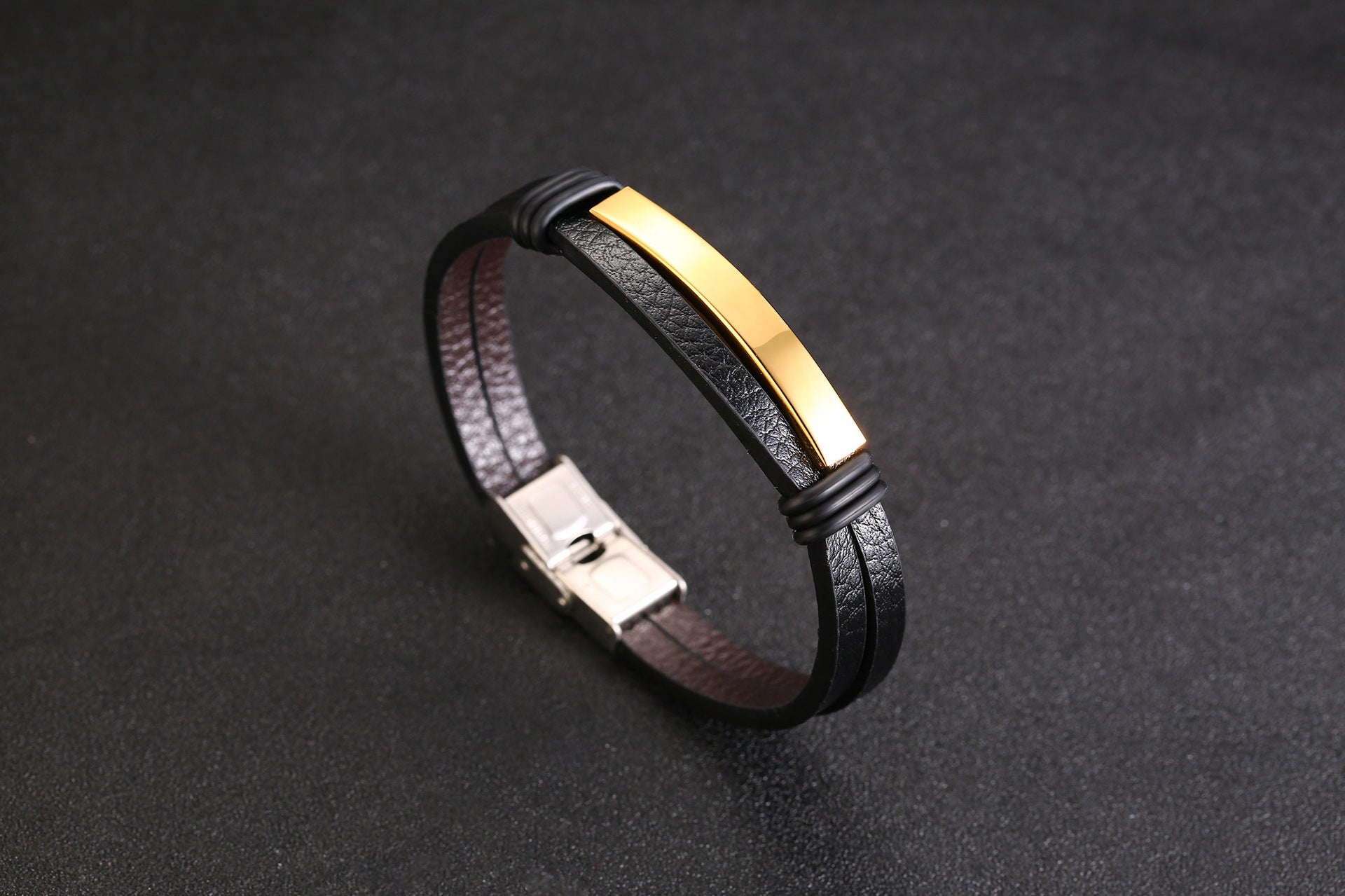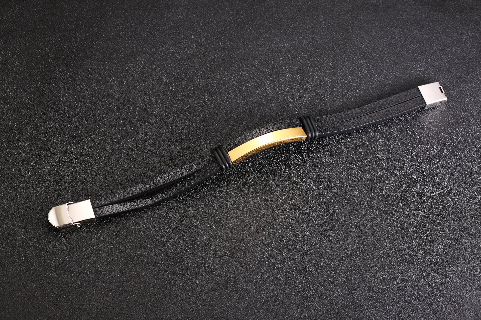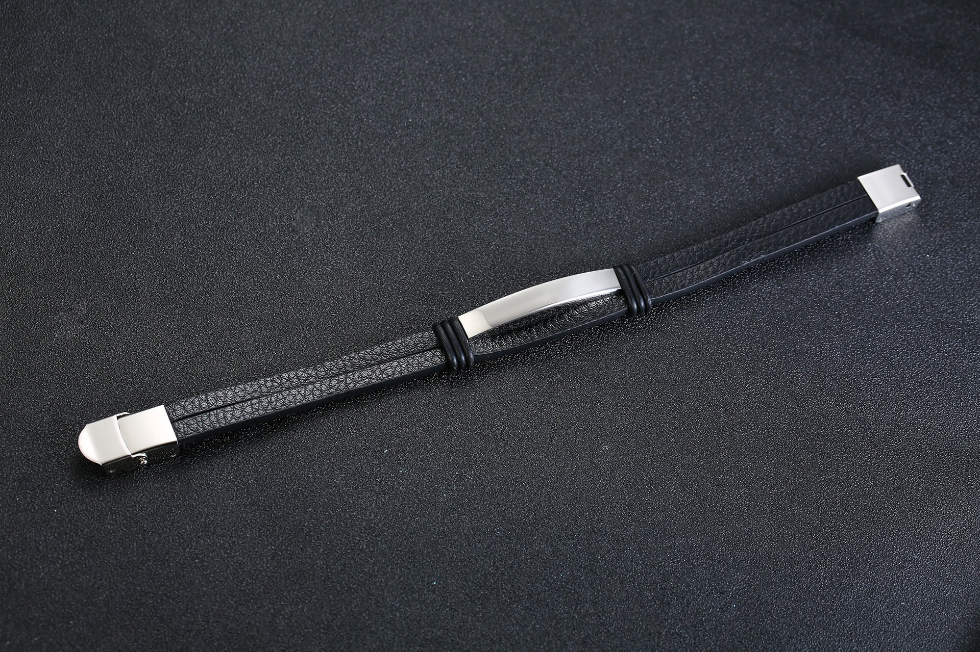 Discover the ultimate accessory for modern men with the AliExpress Amazon hot-selling black stainless steel men's bracelet, double leather bracelet spot for men. This exquisite bracelet seamlessly blends style and durability, making it a must-have addition to any wardrobe. Crafted from high-quality titanium steel and adorned with double leather accents, this bracelet exudes a rugged elegance that perfectly complements both casual and formal attire.