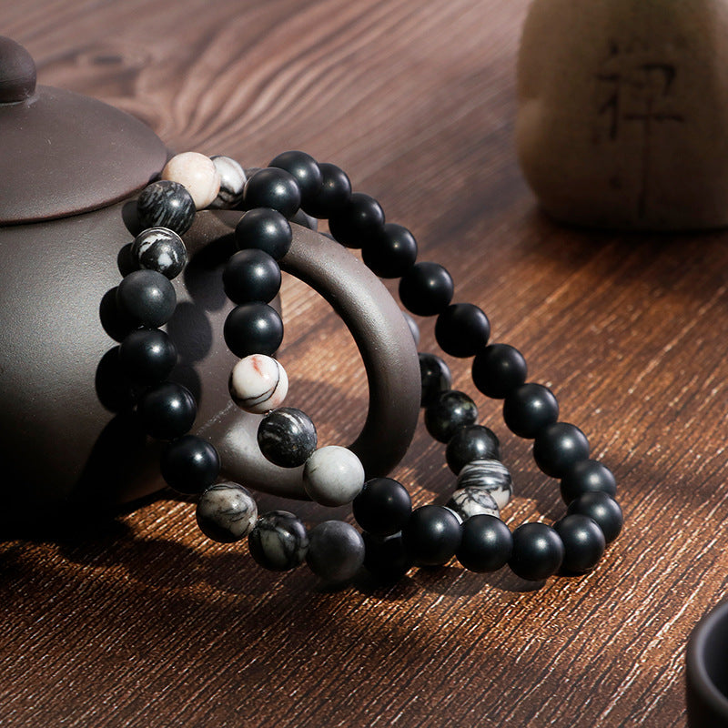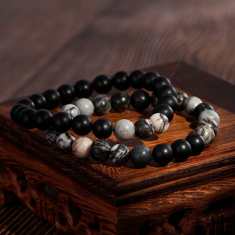 Men's 8mm Hand-Woven Agate Stone Beaded Bracelet - European and American Style