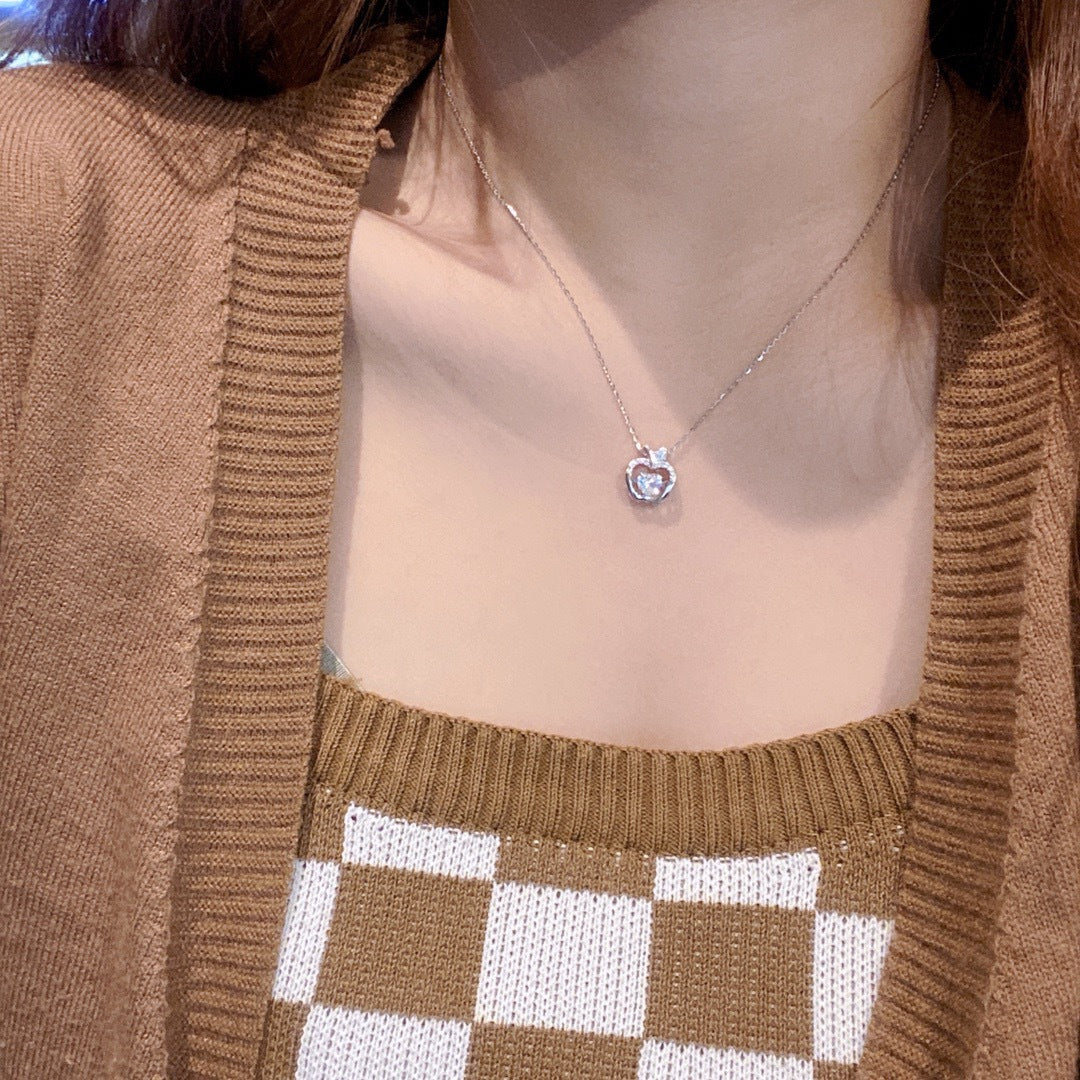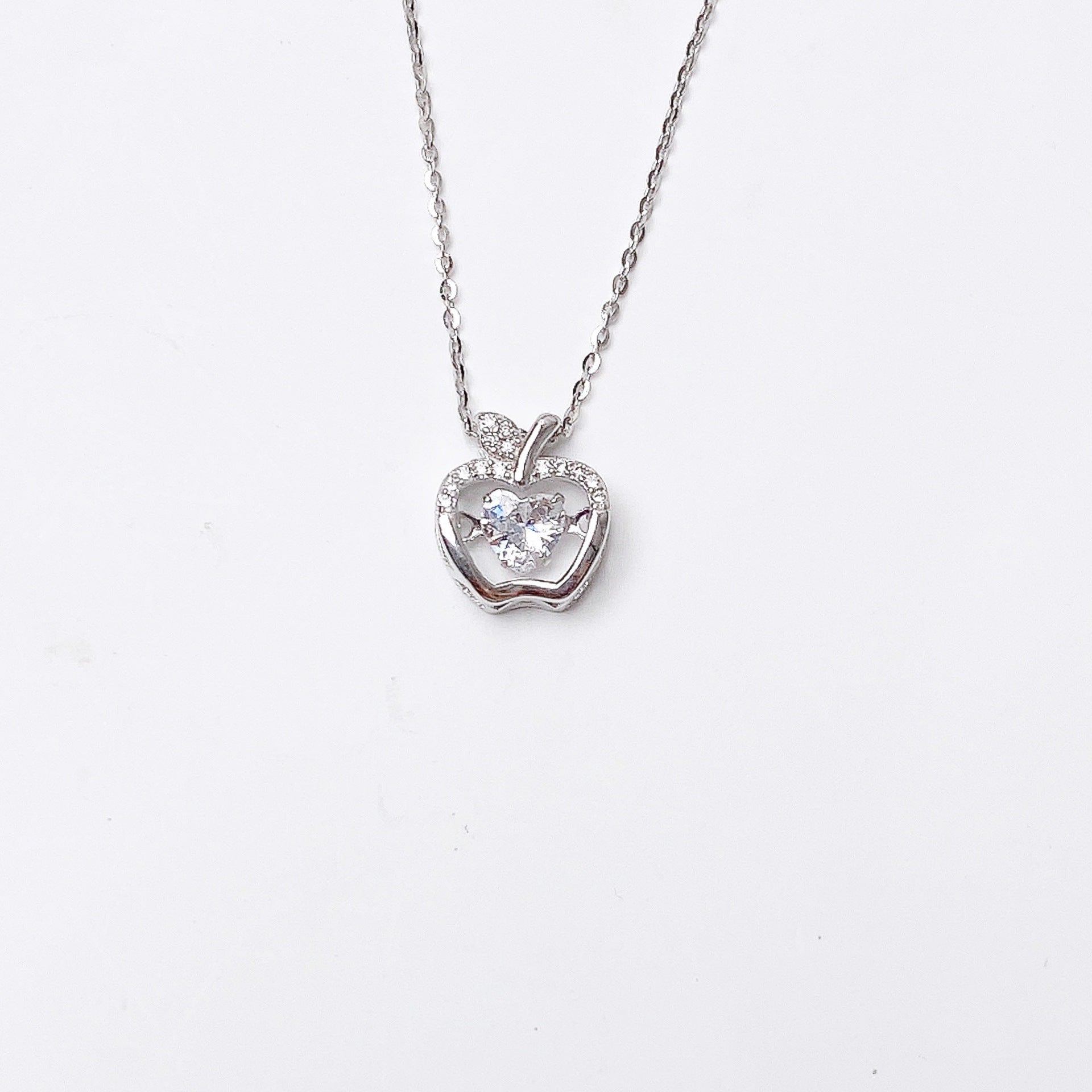 Heart-shape Zircon Apple Pendant Silver Necklace for Women