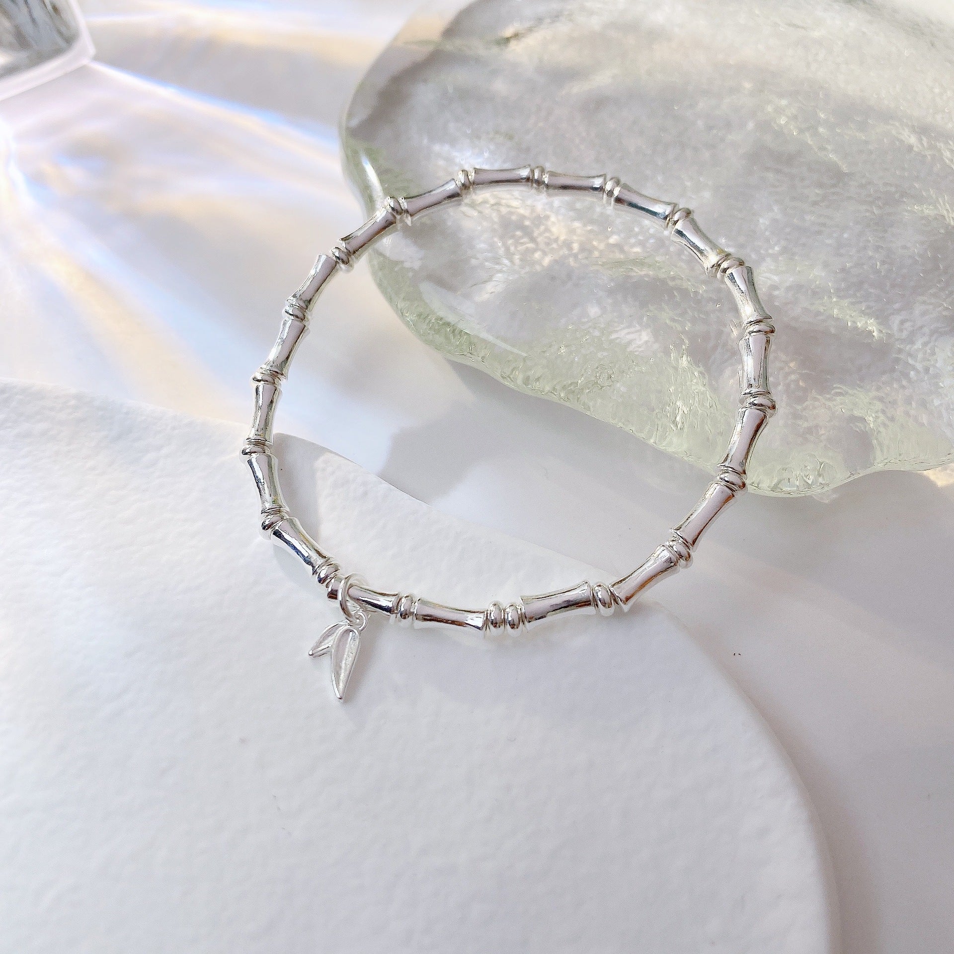 Bamboo with Leaf Silver Bracelet for Women