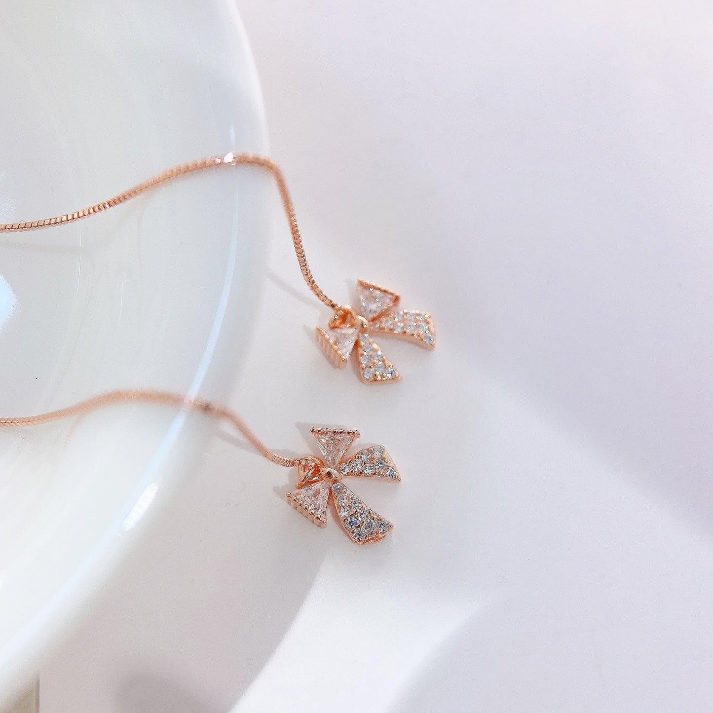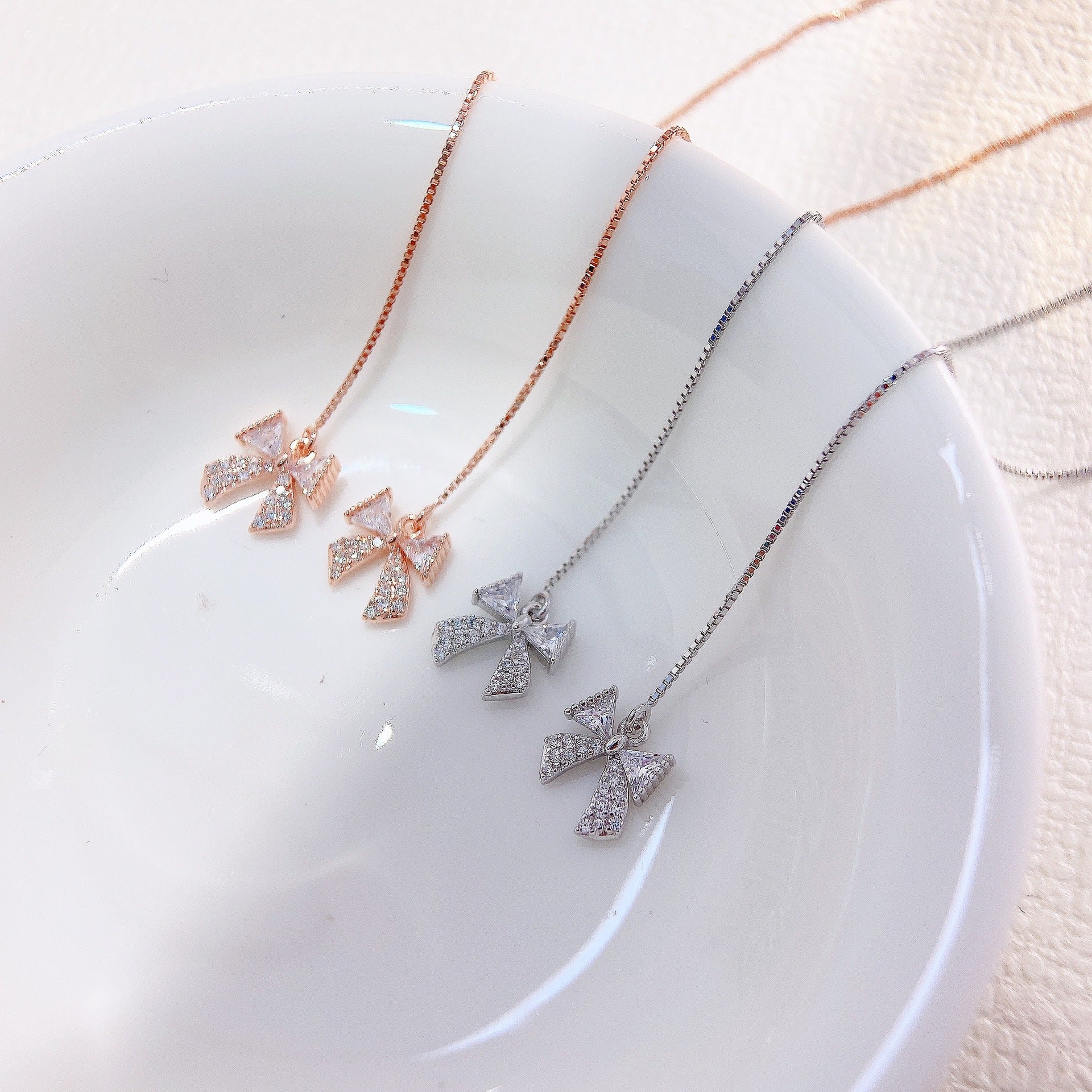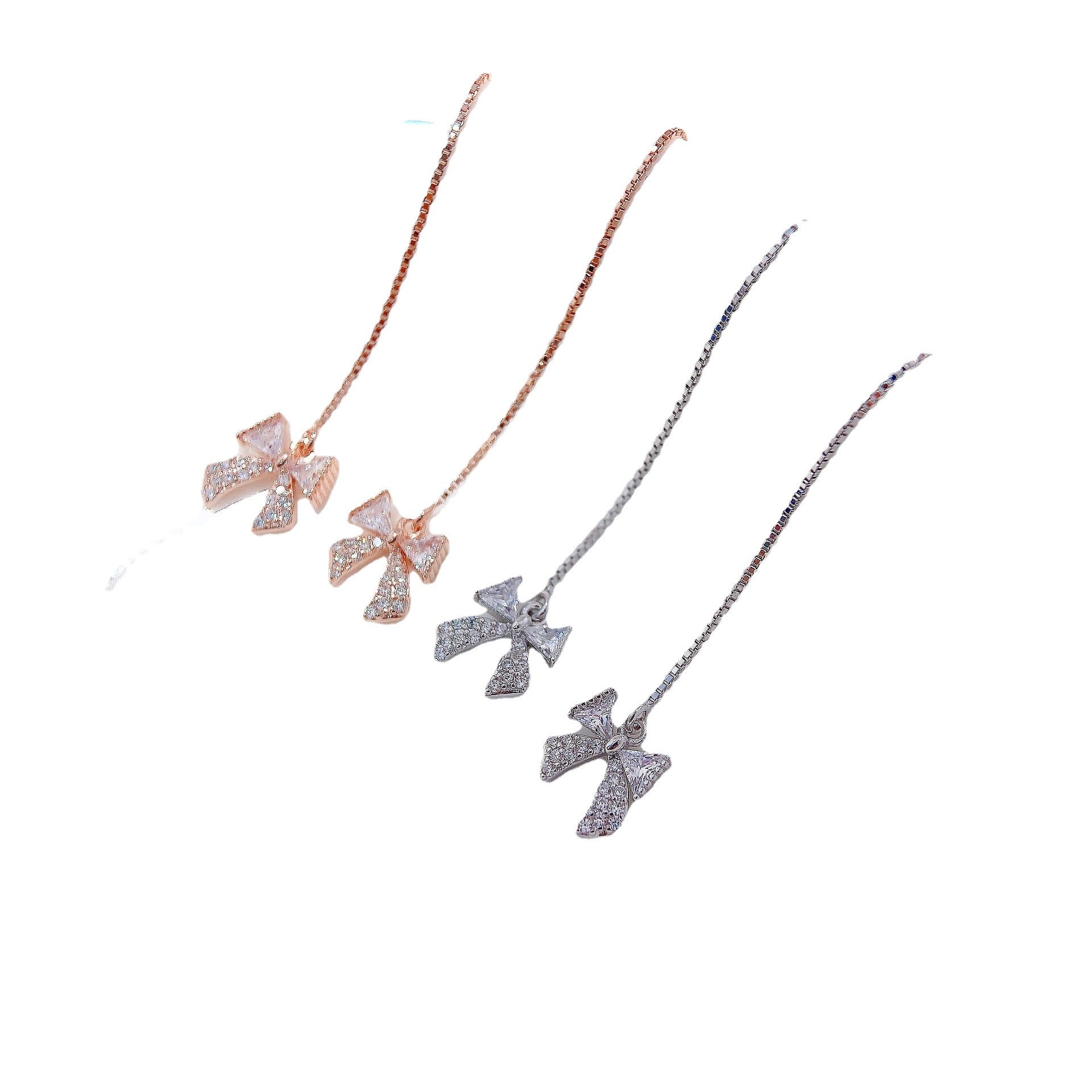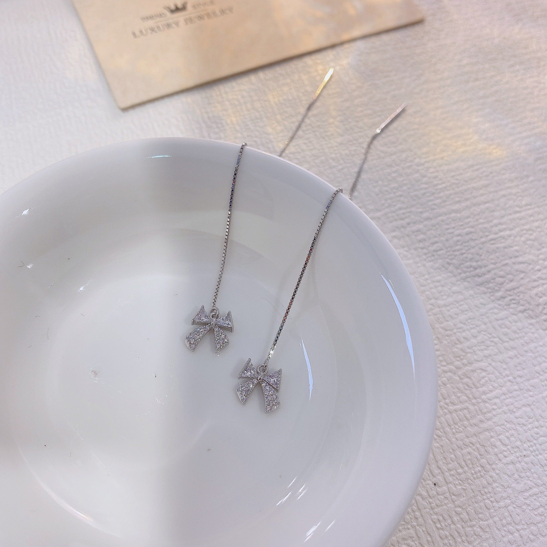 Zircon Bow Tassel Earline Silver Drop Earrings for Women
