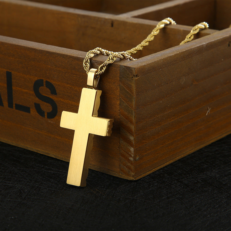 Customized Men's Titanium Steel Cross Pendant in Sleek Punk Style