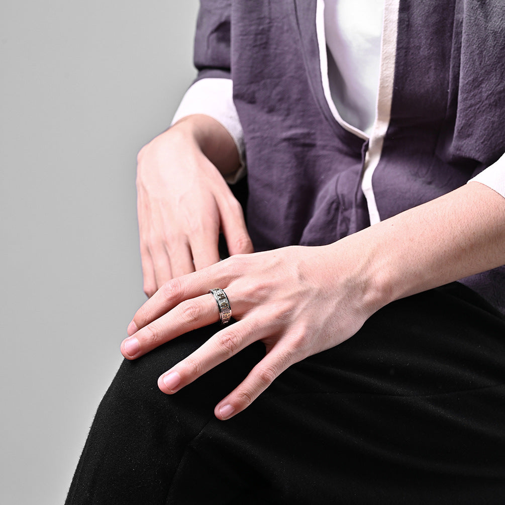 The Chinese Taoist Nine Characters Mantra Titanium Steel Rotating Ring is more than just an accessory; it's a reminder to maintain a calm and centered mindset. Ideal for meditation or as a daily wear piece, this ring serves as a source of comfort and style. Whether you're looking to enhance your personal collection or searching for the perfect gift, this hand jewelry accessory is an excellent choice for men who appreciate meaningful design paired with functional attributes.