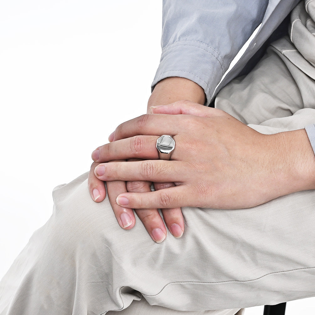 Ideal for the fashion-forward man, this ring serves as a statement piece that reflects individuality. Its smooth finish and contemporary aesthetics make it a versatile addition to your jewelry collection.