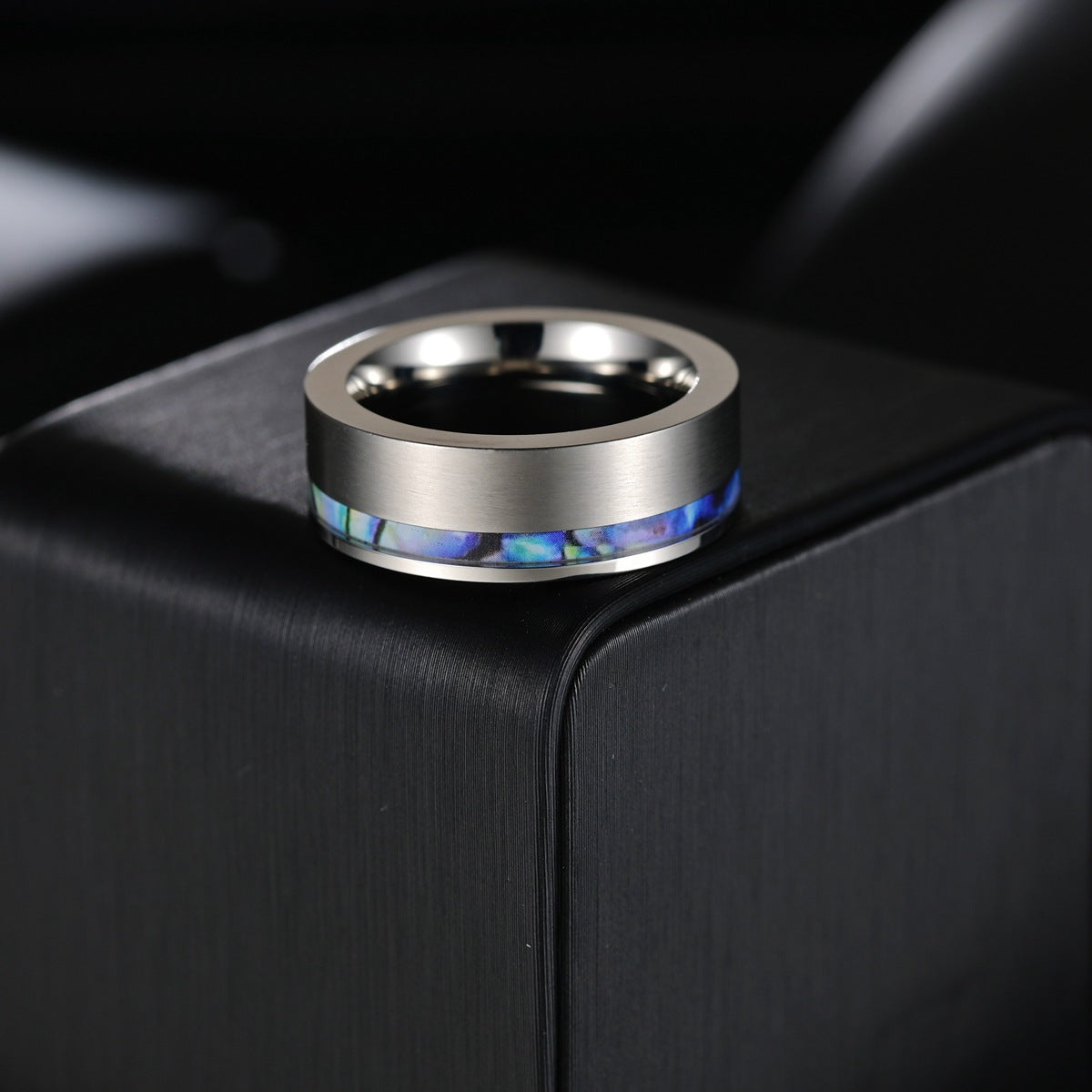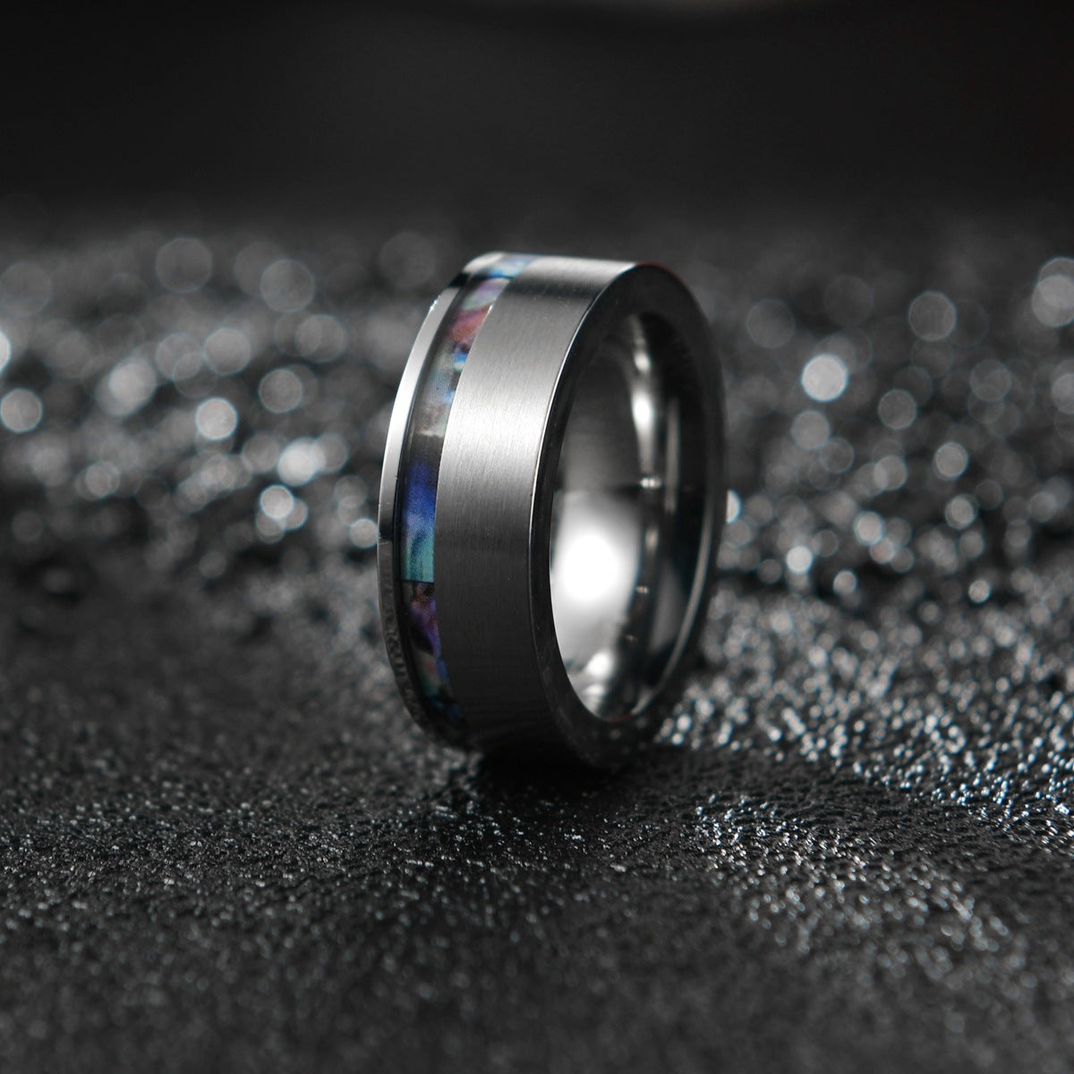 8MM Tungsten Steel Ring with Shell Paper Inlay - Men's Fashion Jewelry Wholesale