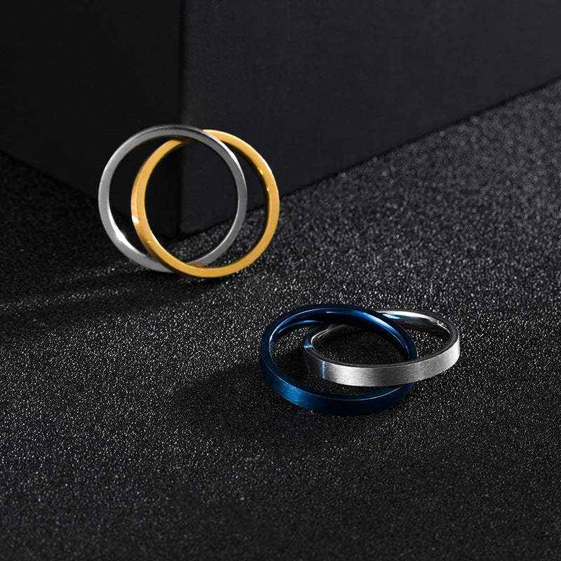 Two-Tone Double-Engraved Titanium Steel Men's Ring with Long-Lasting Vacuum Plating