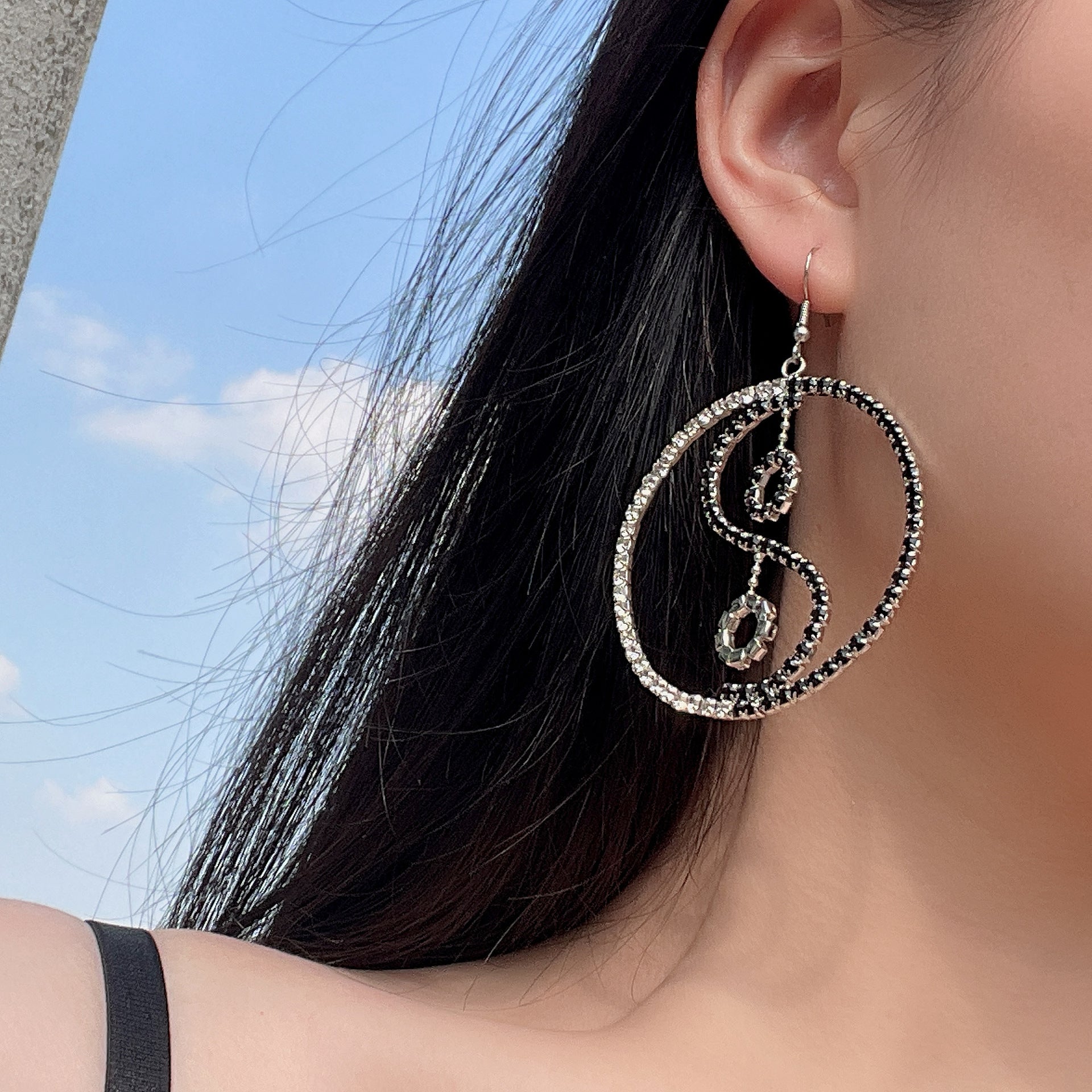 Embrace the fusion of Cross Border European and American jewelry with our Retro Tai Chi Full Diamond Contour Earrings. These intricately designed earrings are perfect for women who appreciate unique accessories that make a statement.