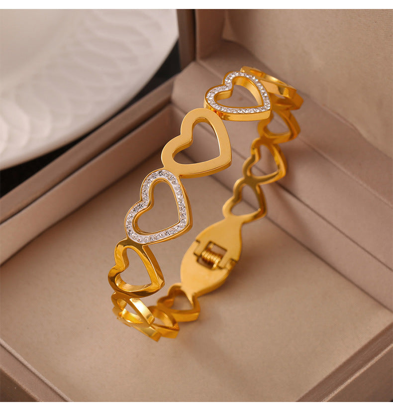 Luxurious Multi-Layer Hollow Gold-Plated Titanium Steel Bracelet with Geometric Zircon Design