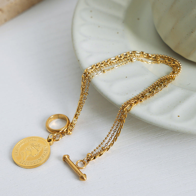 Retro Chic Titanium Steel Bracelet with OT Buckle Pendant - Unisex Statement Jewelry