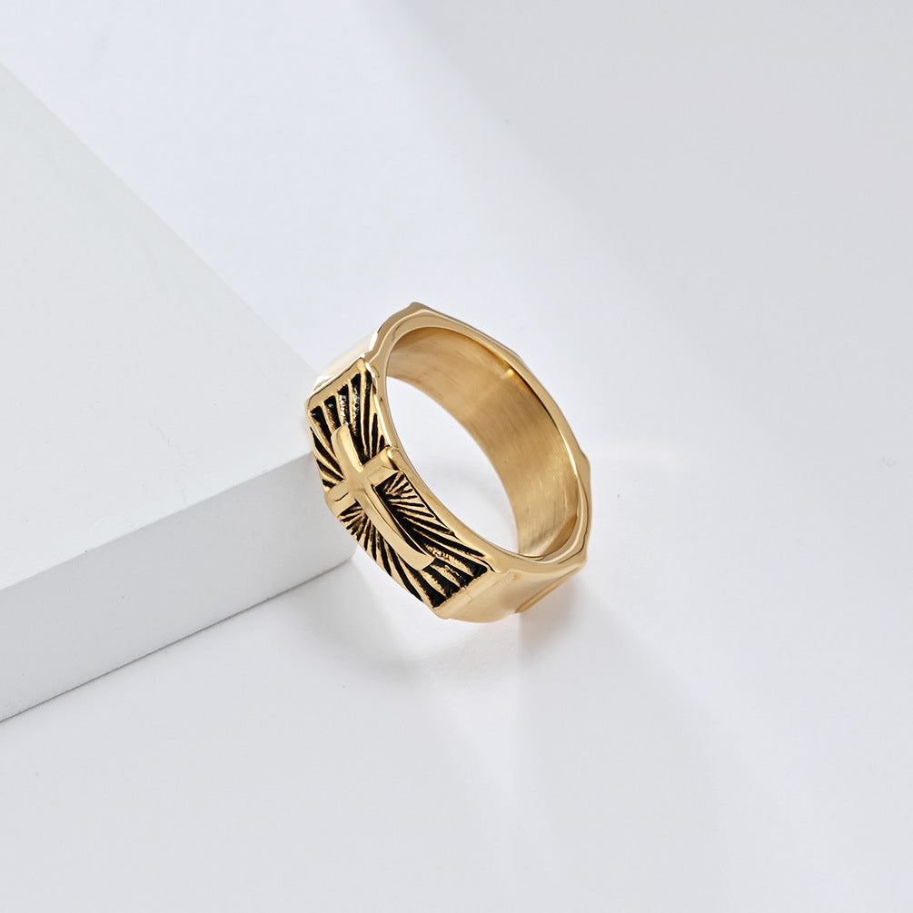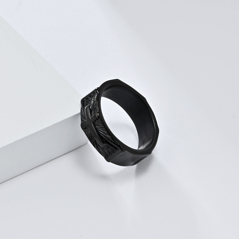 Cross-Border Retro Titanium Steel Cross Ring for Men