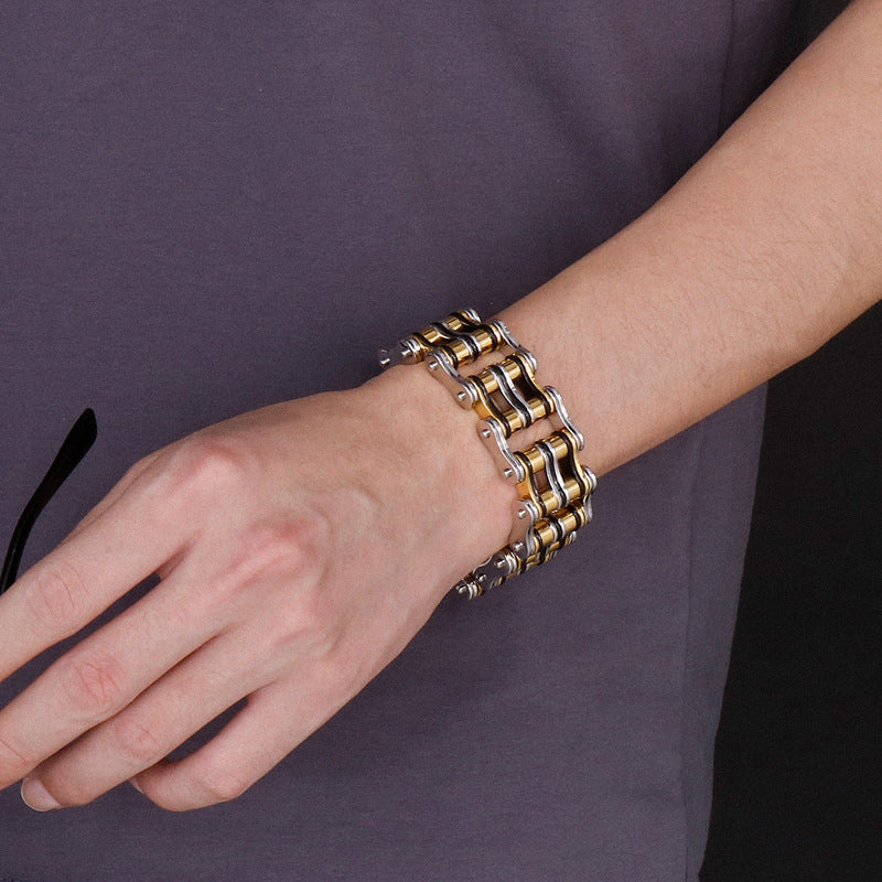 Dominant Cross-Border Smooth Locomotive Bracelet for Men - European & American Personalized Titanium Steel Bicycle Jewelry
