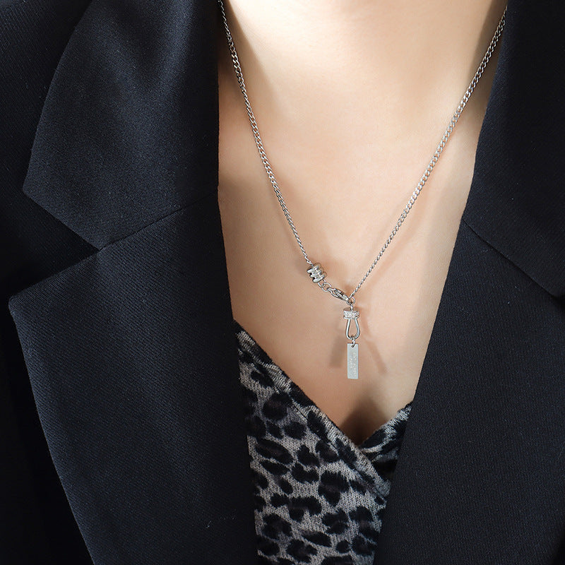 Exquisite Diamond-Encrusted U-Shape Necklace with Long Card Pendant