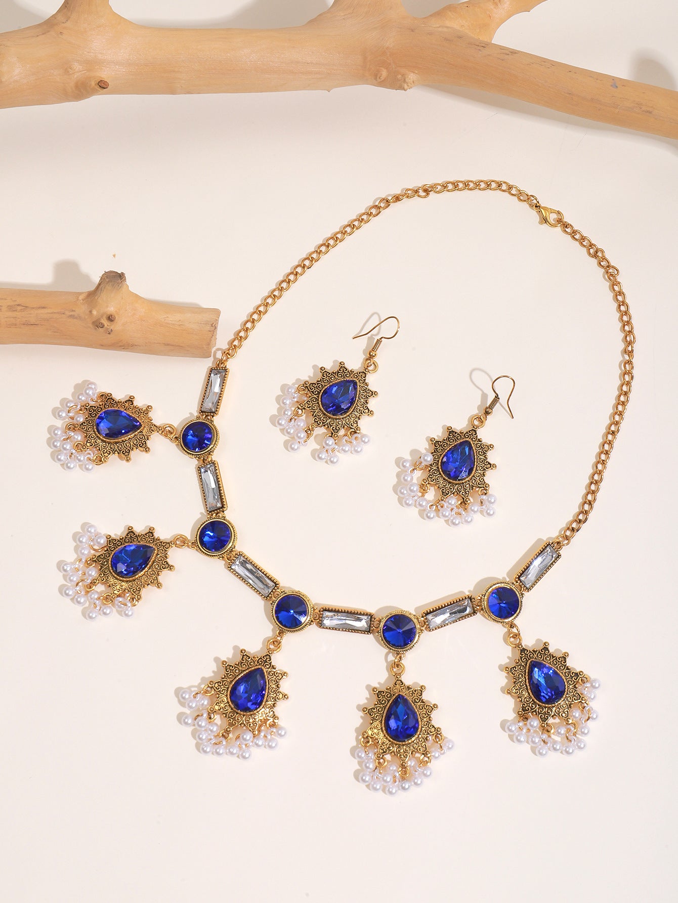 Glistening Waters Gemstone Bridal Jewelry Set with Charming Neckpiece - Cross-border Design