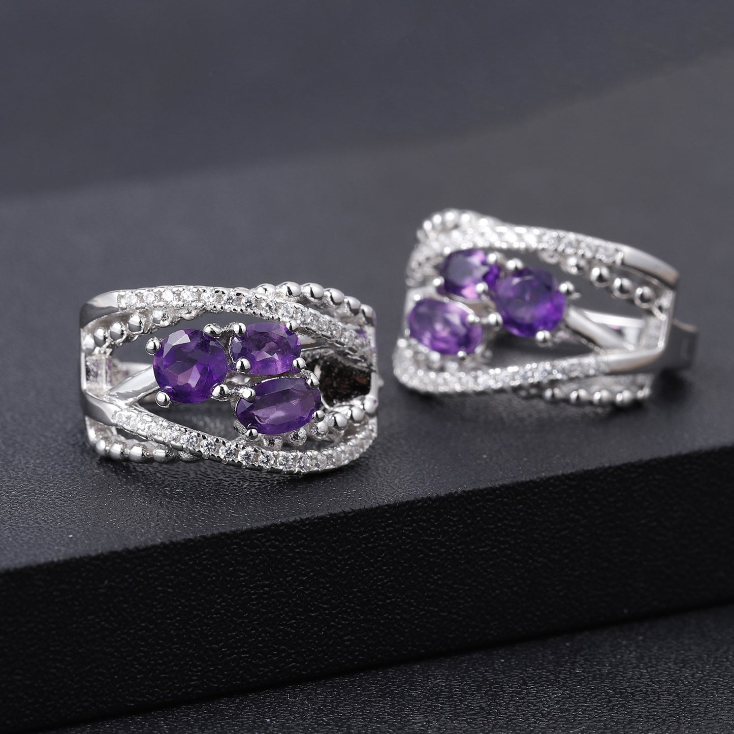 These Three Layers X line Oval Natural Gemstones Silver Stud Earrings are the perfect accessory to any outfit. Crafted from sterling silver and adorned with three oval gemstones, these earrings have a timeless charm and classic look to them. The gemstones add a touch of sparkle, making these the perfect choice for any occasion.