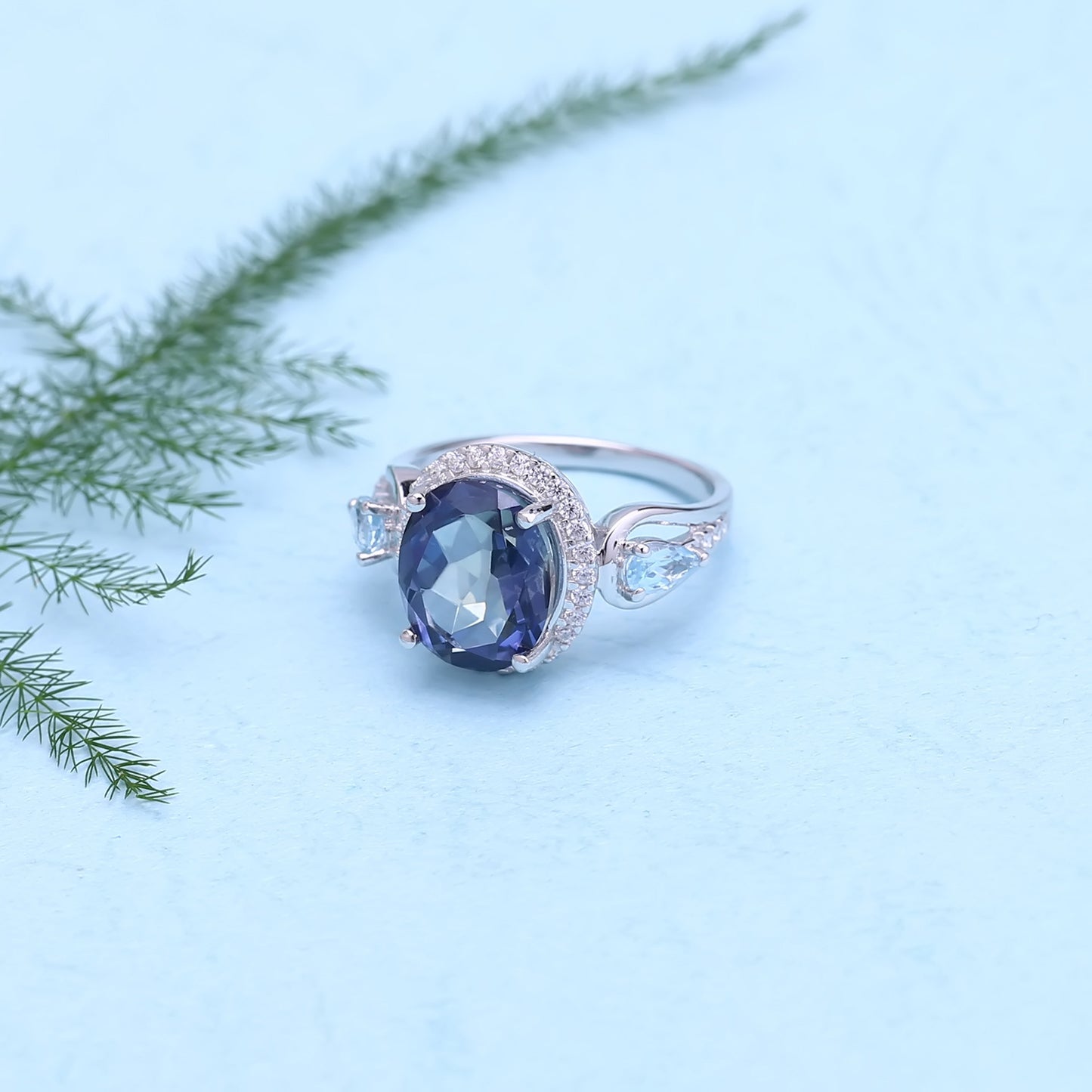This European Luxury Style Sterling Silver ring for Women features an Oval Crystal at the center with Soleste halo, expertly decorate with two beautiful small water drop crystals on the ring arm, adding a touch of sparkle and shine. Perfect for any occasion, this exquisite piece will add an element of sophistication to any look.