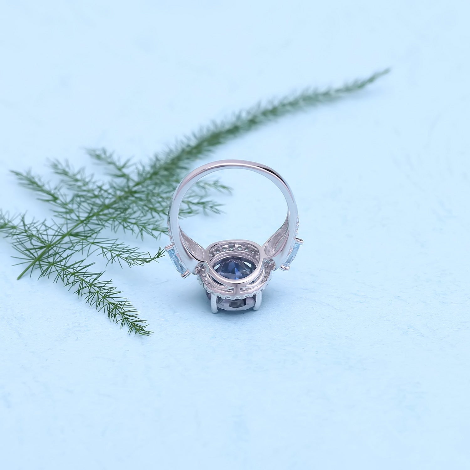 European Luxury Style Inlaid Crystal Oval Sterling Silver ring for Women
