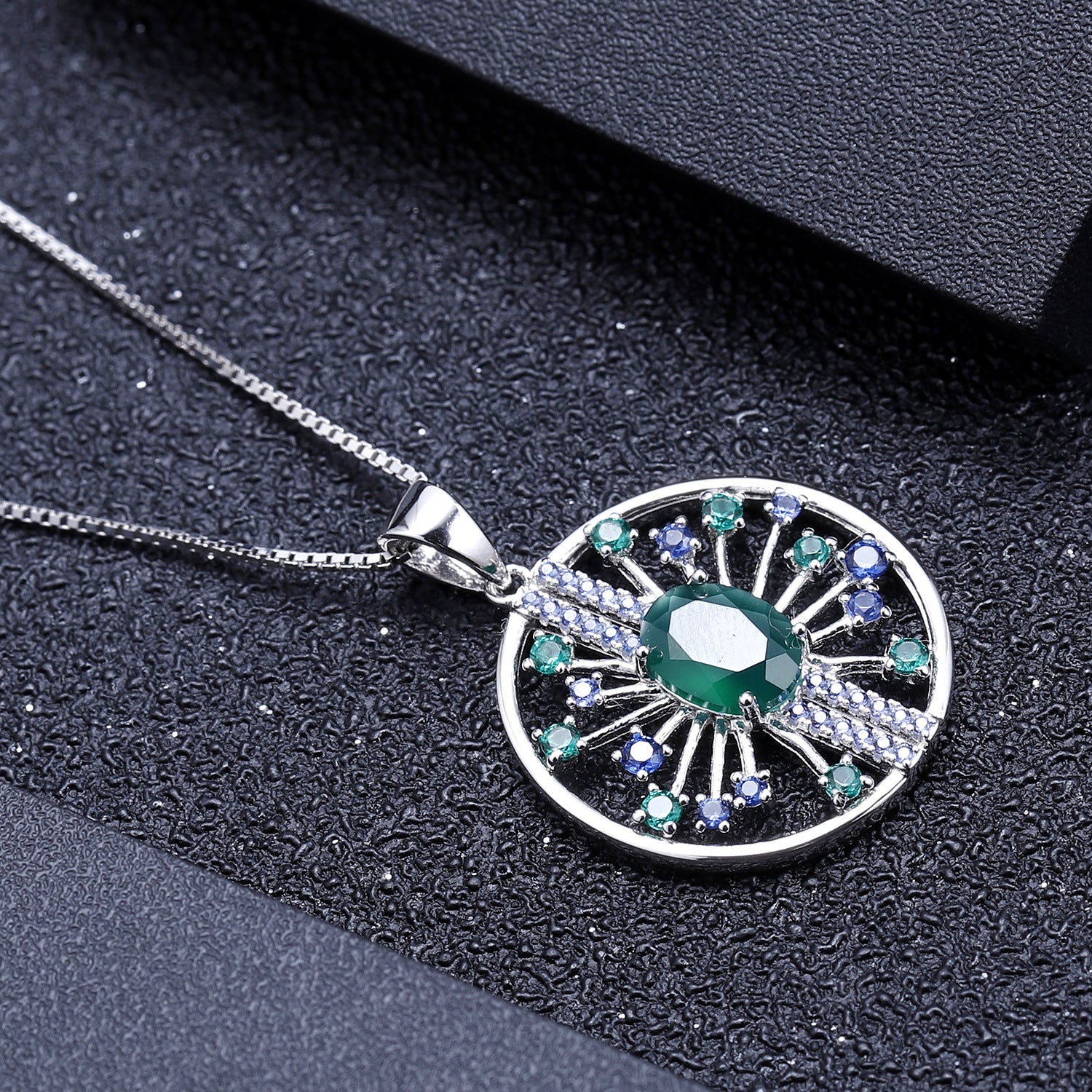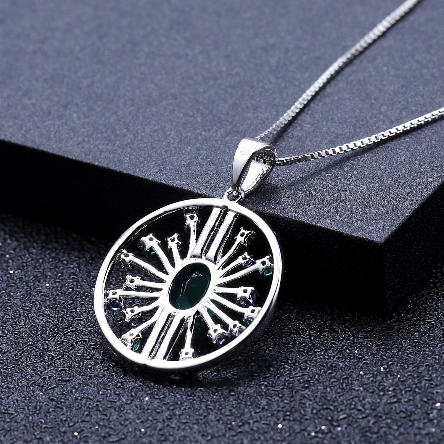 This Circle Fireworks Oval Natural Green Agate Silver Necklace is the perfect statement-making addition to any look. This eye-catching accessory is a fusion of two highly sought-after items--a circle fireworks design and a natural oval green agate stone-- that will add a touch of elegance and glamour to any ensemble.