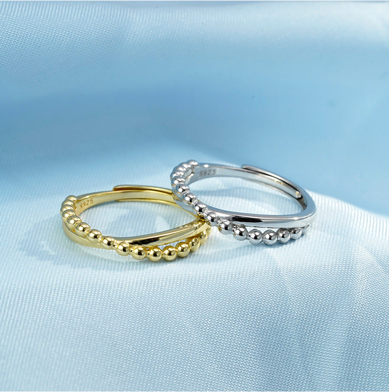 Featuring an irregular, double-layered design, this ring showcases intricate bead details that catch the light beautifully. Its unique look makes it perfect for stacking or wearing solo on your index finger, allowing for versatile styling options.