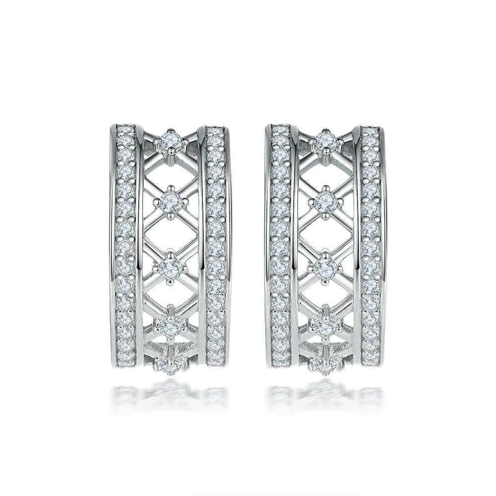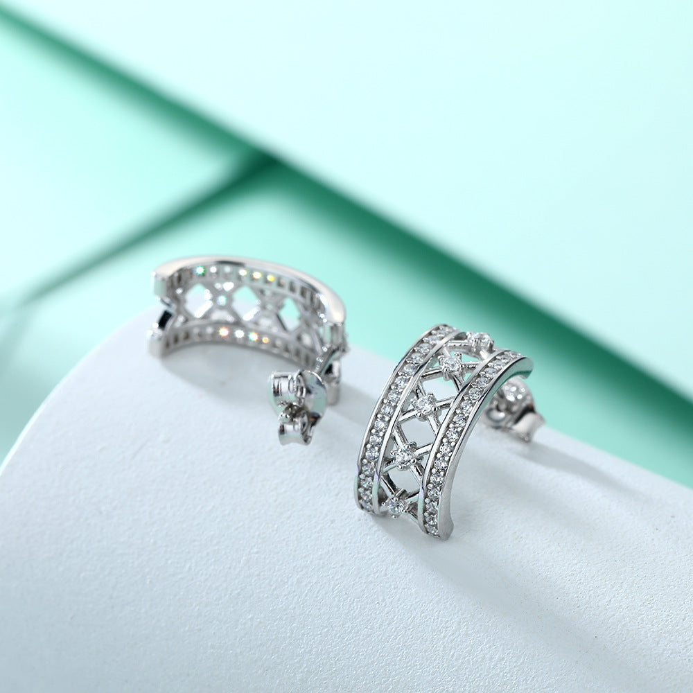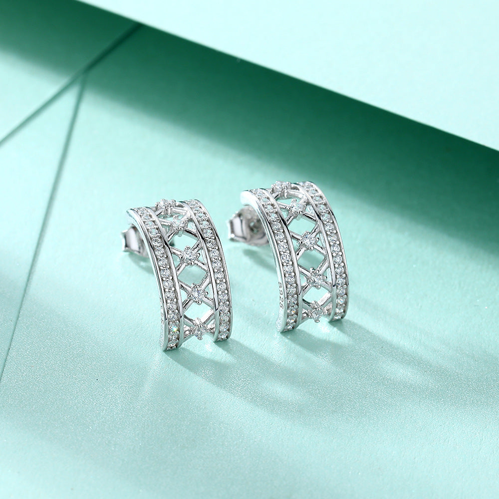 Zircon Net Half Circle Silver Studs Earrings for Women
